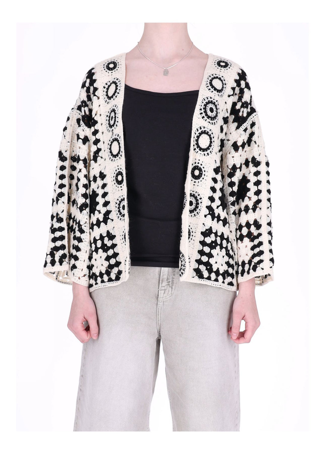 Strickjacke Häkel Damen offen kurz 3/4 Arm