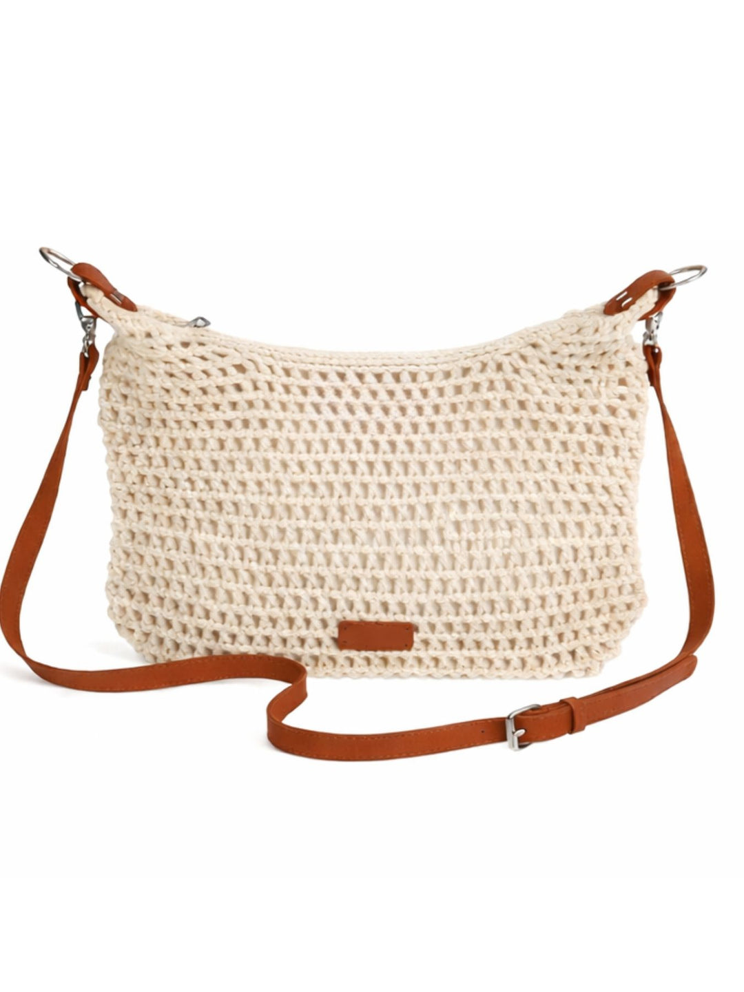 Umhängetasche Damen Makramee Lederriemen Lederpatches