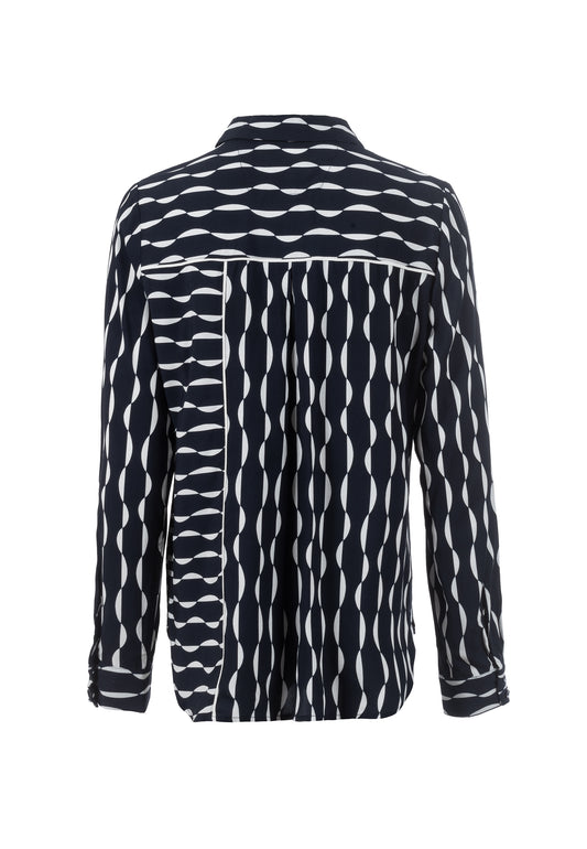 Damen Bluse, AOP, 3/4 arm, Stegkragen