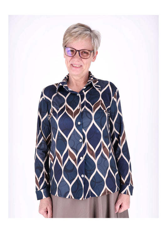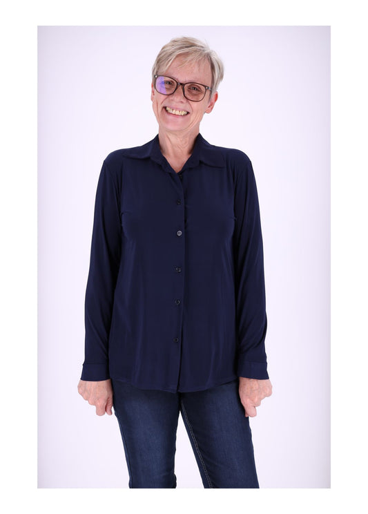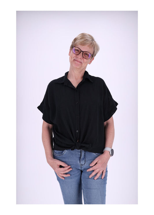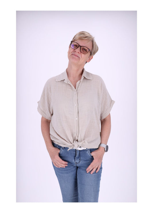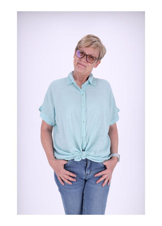 Bluse 1/2 Arm Damen Leinenoptik verdeckte Knopfleiste