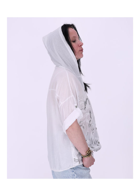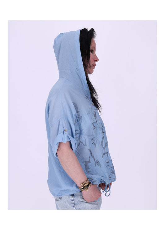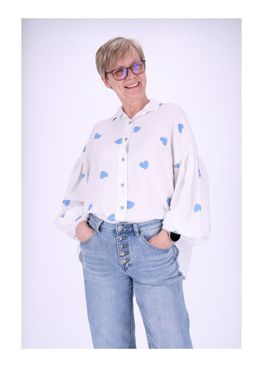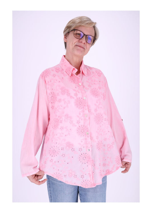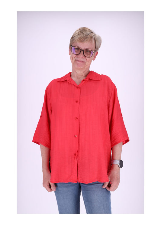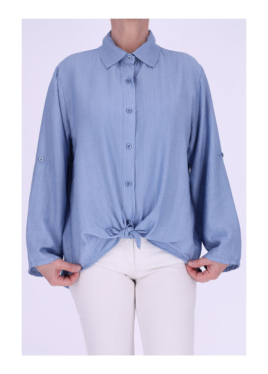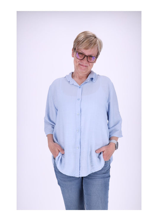 Bluse Damen Stehkragen Krempelarm 3/4 Arm