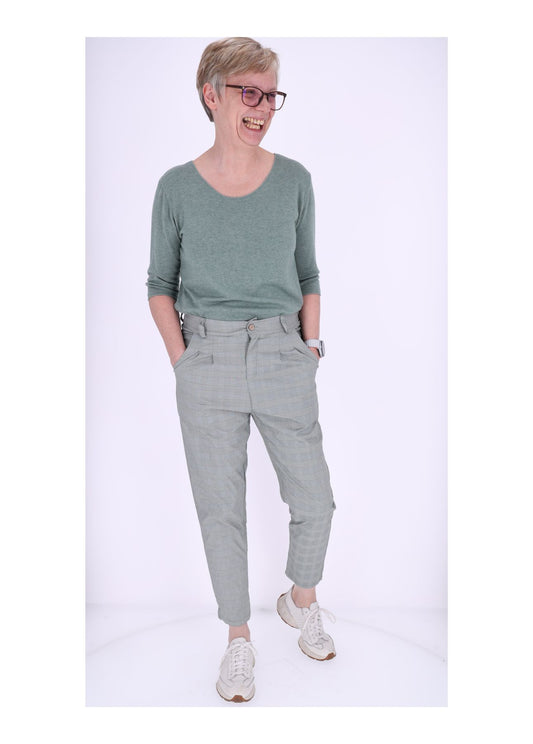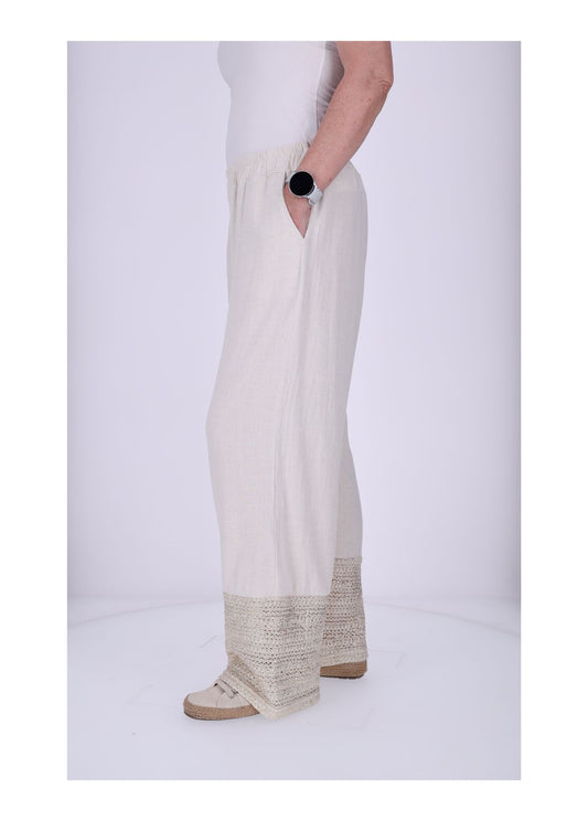 Hose Damen Häkeleinsatz am Beinende goldbesprüht