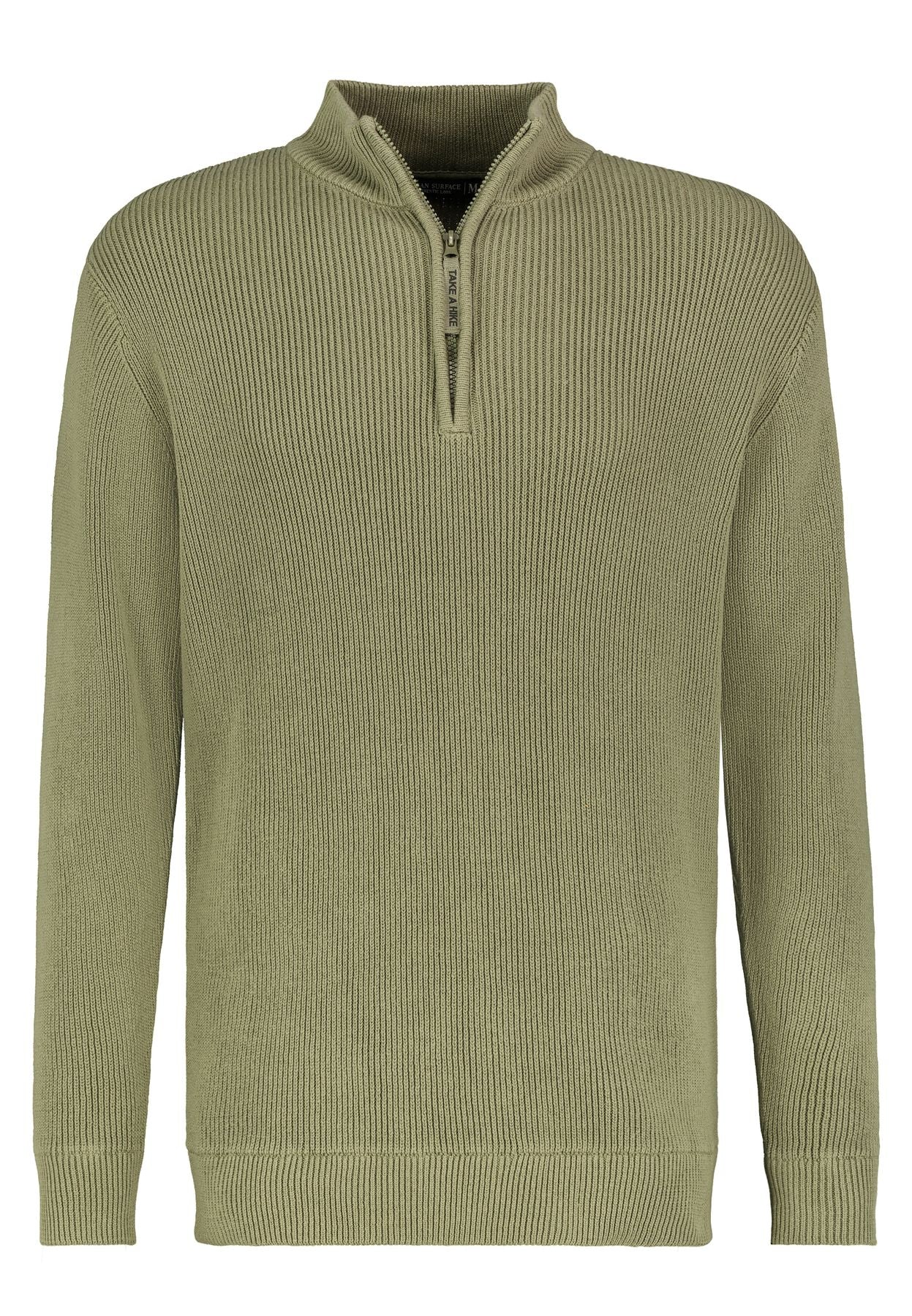 Modisches Detail Der Stehkragen mit kurzem Reißverschluss (Zipper) verleiht dem Pullover einen sportiven Touch. Der Kragen ist mit feinem 1x1 Rippstrick abgesetzt.