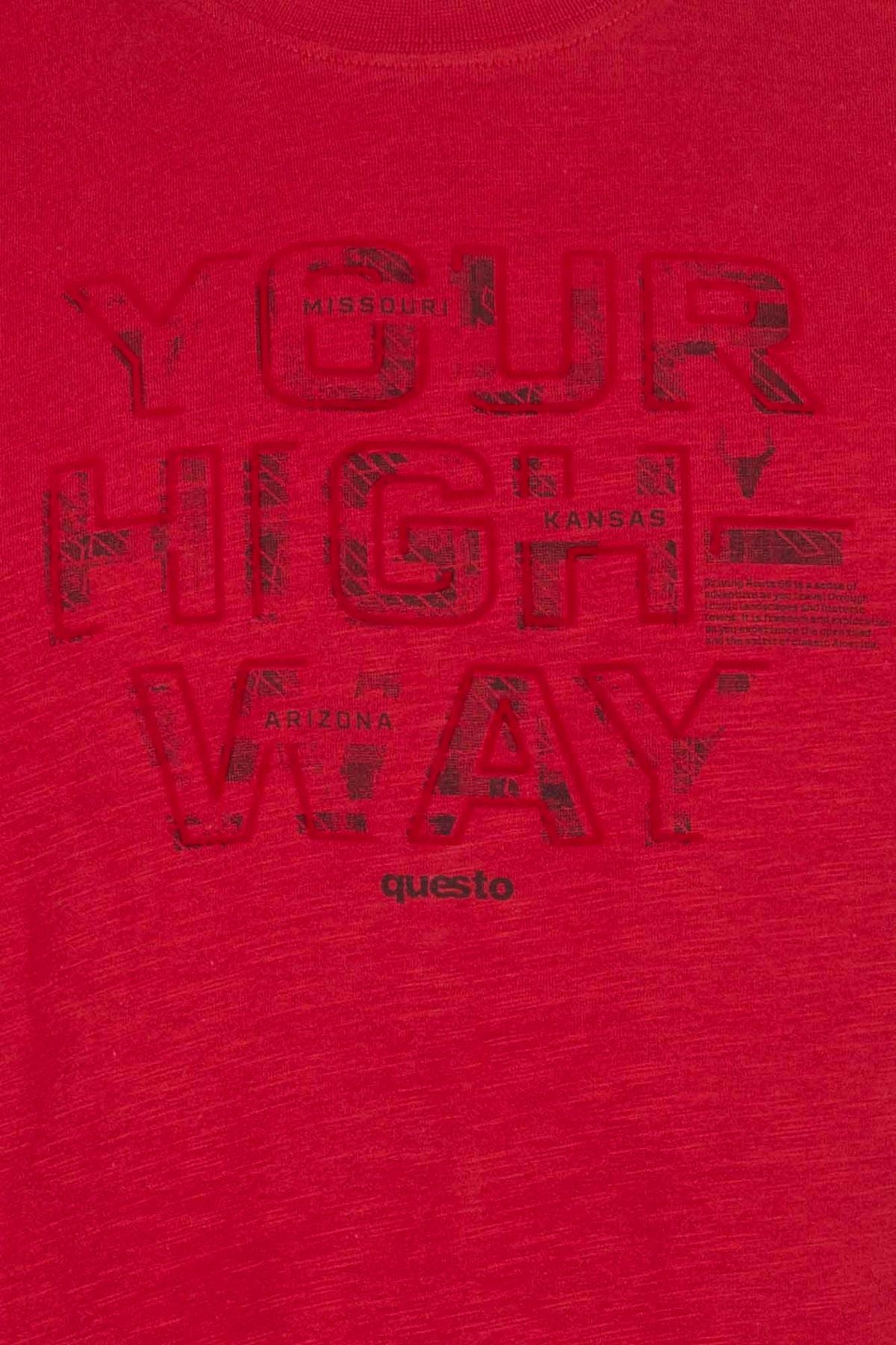 Rundhals-T-Shirt mit platziertem Frontprint in lässigem Lettering-Motiv. Das Flammgarnmaterial kombiniert mit kontrastigen Einsätzen an den Schultern rundet den Look harmonisch ab.