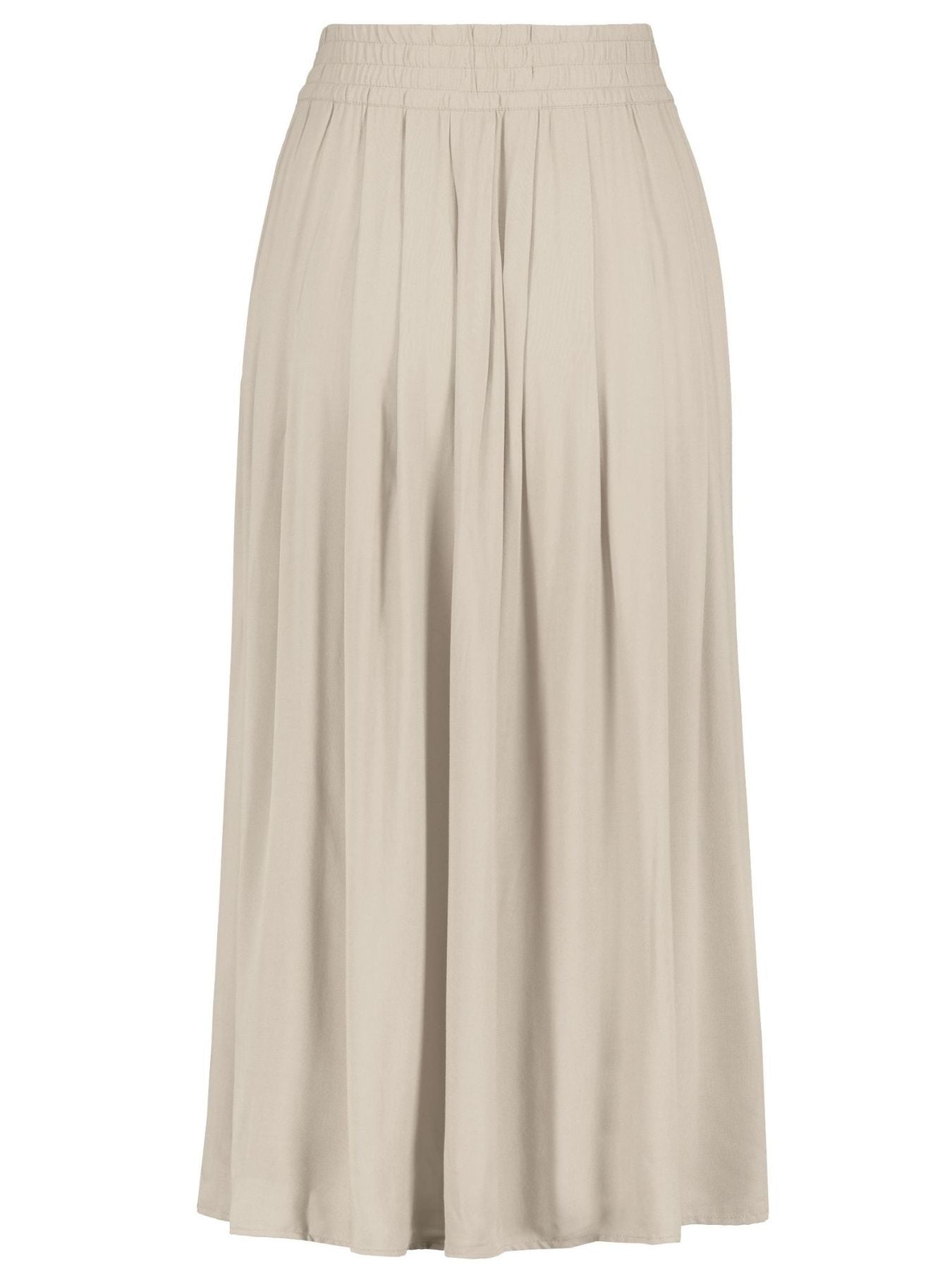 Dieser stilvolle Damenrock vereint feminine Eleganz mit modernen Details. Der breite Bund sorgt für einen bequemen und zugleich formgebenden Sitz, während die dekorativen Falten auf der Vorderseite dem Rock eine schöne, fließende Silhouette verleihen. Die Zierknopfleiste vorn setzt einen modischen Akzent und rundet das Design harmonisch ab.