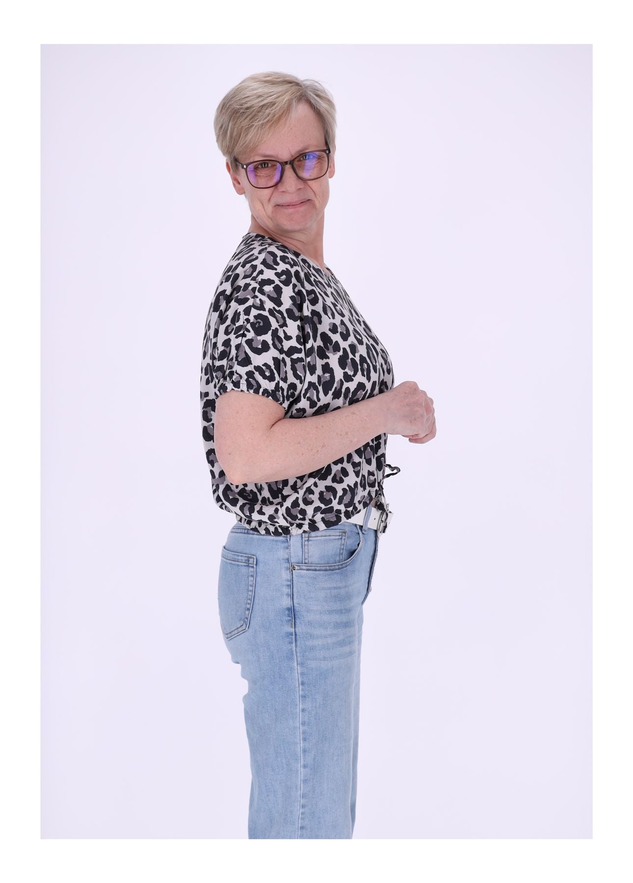 Ob zu Jeans, Shorts oder Rock – diese Bluse ist perfekt für warme Tage und sorgt mit ihrem tierisch niedlichen Design für einen frischen, fröhlichen Style.