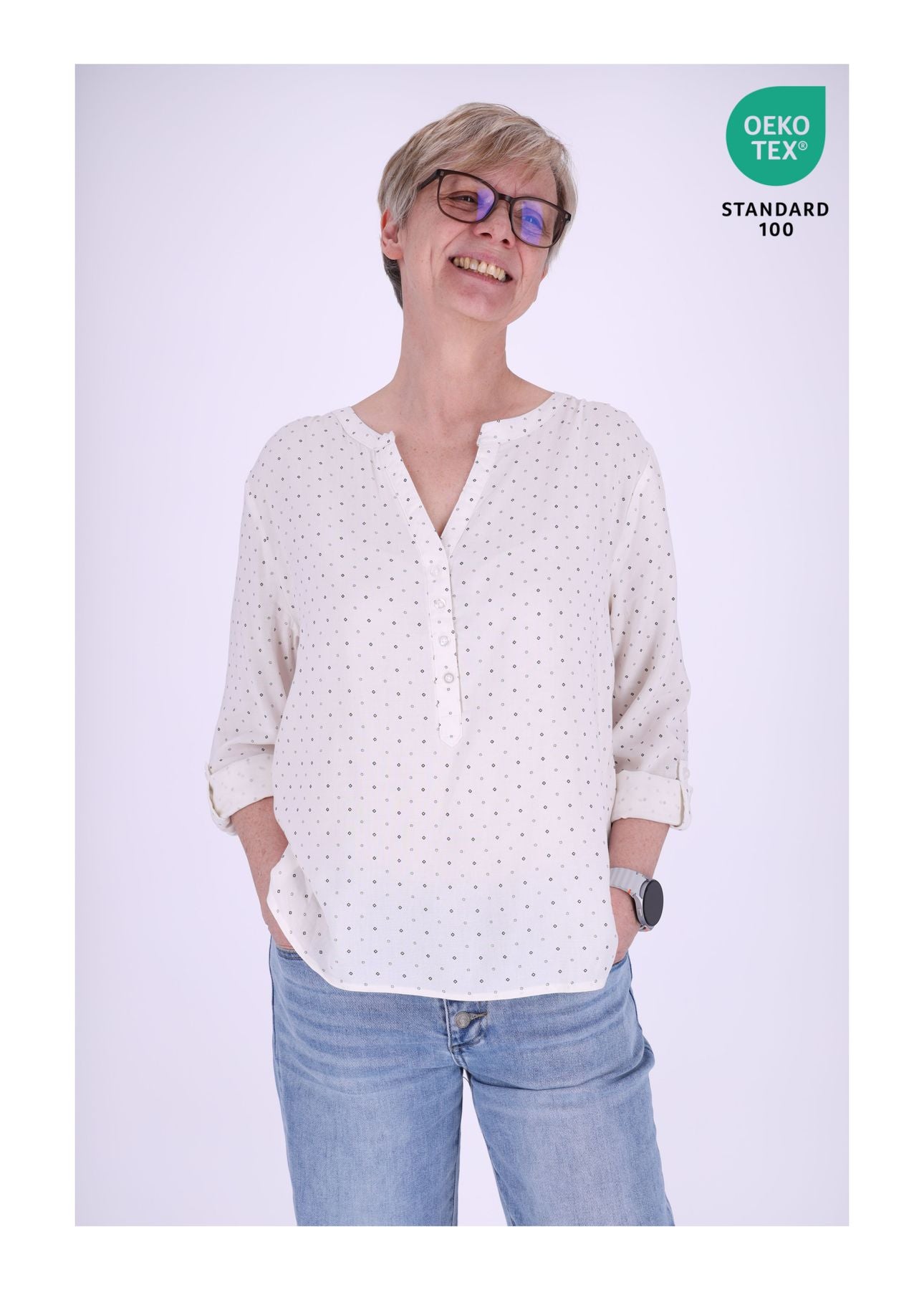 Besonders praktisch: Die Bluse ist nach dem OEKO-TEX® Standard 100 zertifiziert – schadstoffgeprüft und hautfreundlich, für ein gutes Tragegefühl von innen und außen.