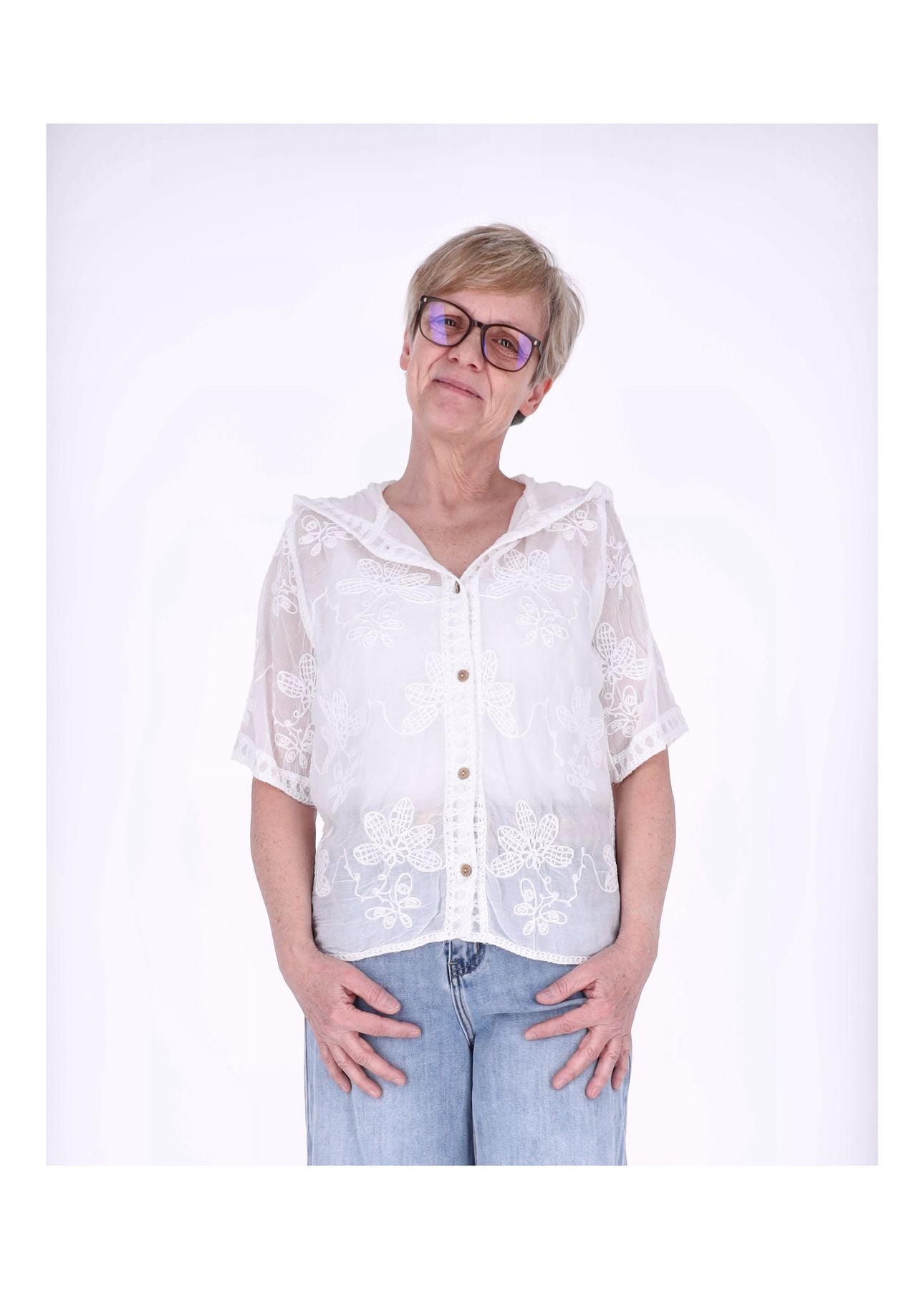 Luftig, leicht und mit besonderem Detail: Diese BOHO-Bluse begeistert mit zarter Stickerei und lässiger Kapuze. Der lockere Schnitt sorgt für eine entspannte Silhouette, während die feine Baumwolle angenehm weich auf der Haut liegt. Perfekt für sommerliche Layering-Looks oder als Highlight zu Jeans & Leinenhosen.