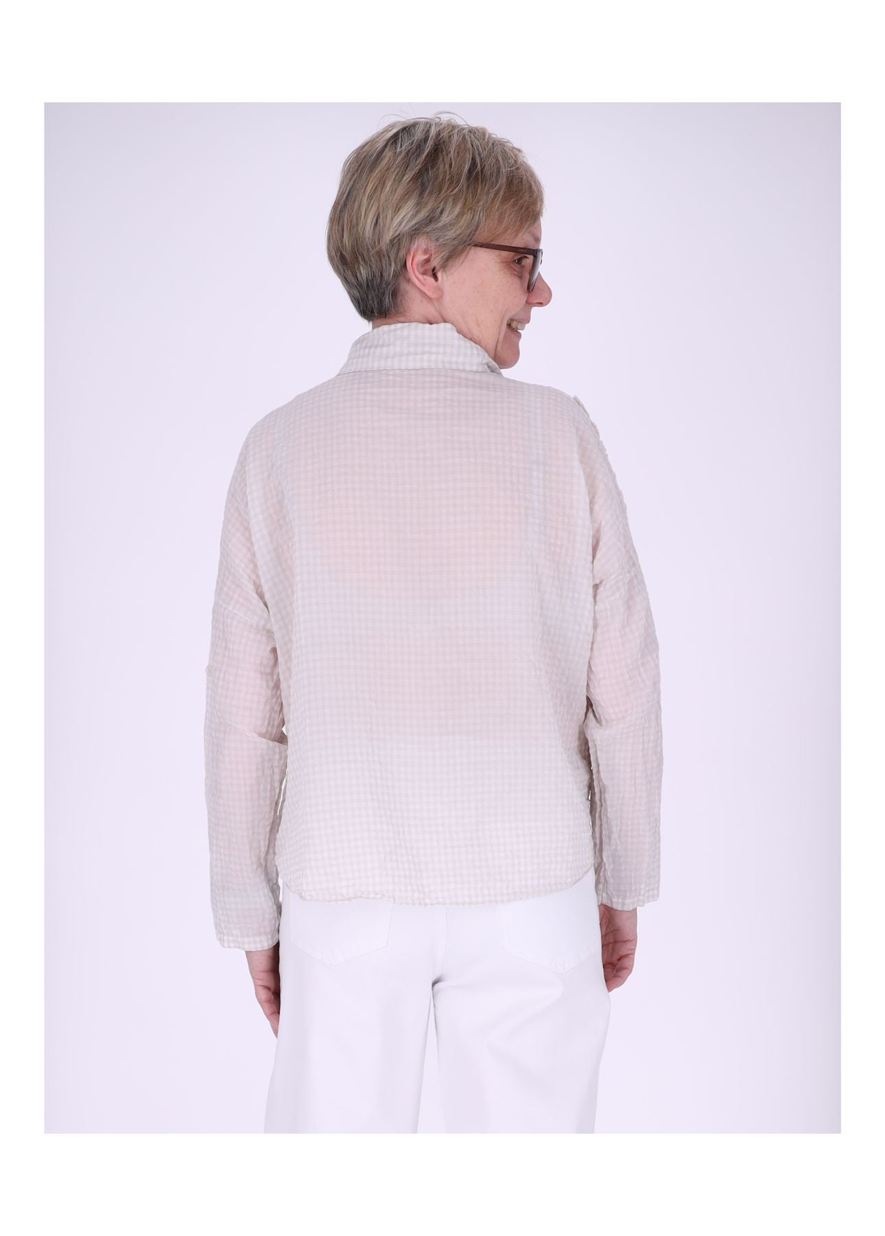 Frisch, feminin & mit liebevollem Detail: Diese Karo-Bluse bringt mit ihren aufgenähten Blüten verspielten Charme in deinen Alltag. Der lockere Schnitt mit überschnittener Schulter sorgt für eine entspannte Silhouette, während der weiche Baumwoll-Mix angenehm auf der Haut liegt.
