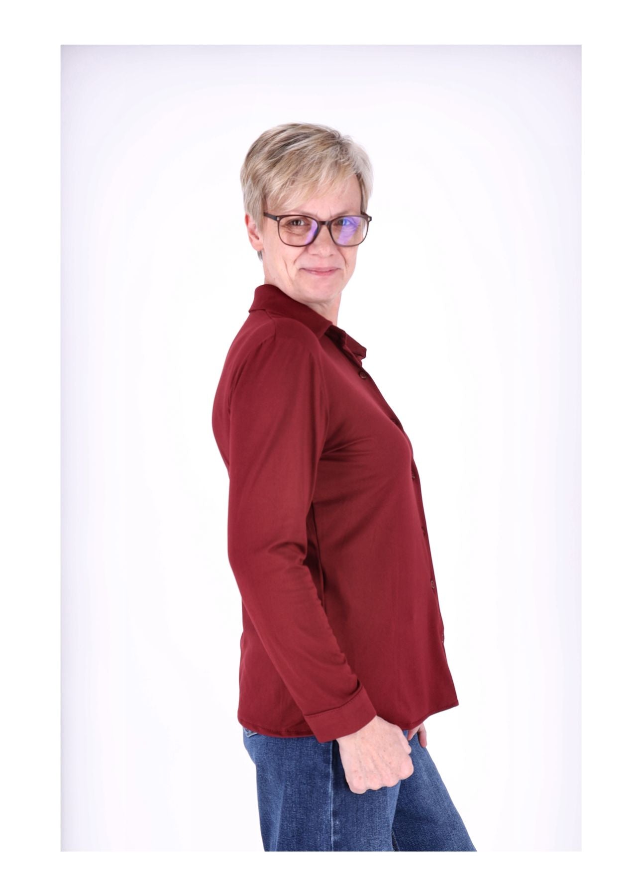 Die durchgehende Knopfleiste sorgt für eine elegante Optik, während der leichte Stretch-Anteil dir Bewegungsfreiheit schenkt. So sitzt die Bluse nicht nur perfekt, sondern fühlt sich auch den ganzen Tag über bequem an.