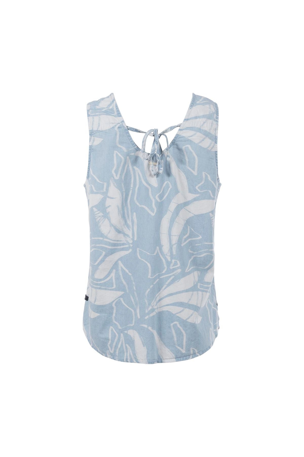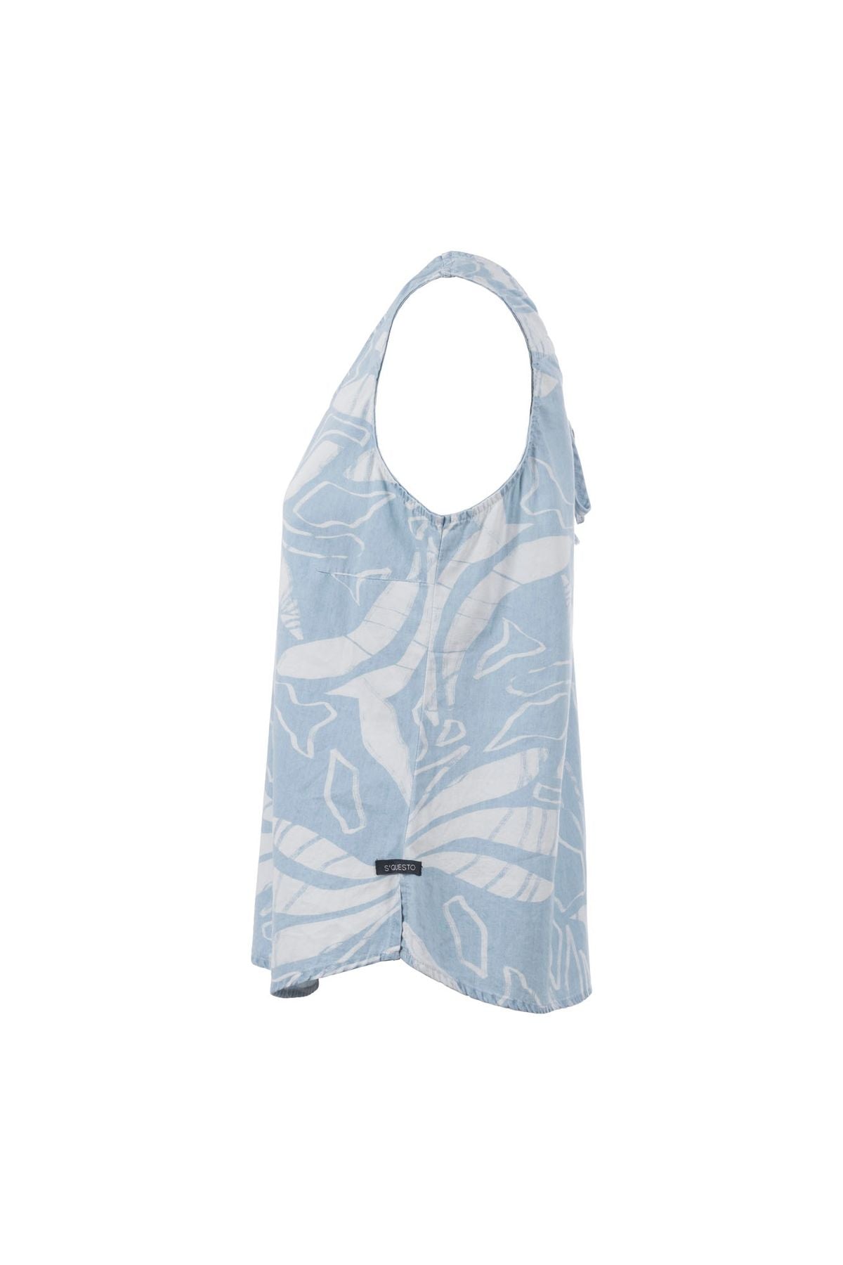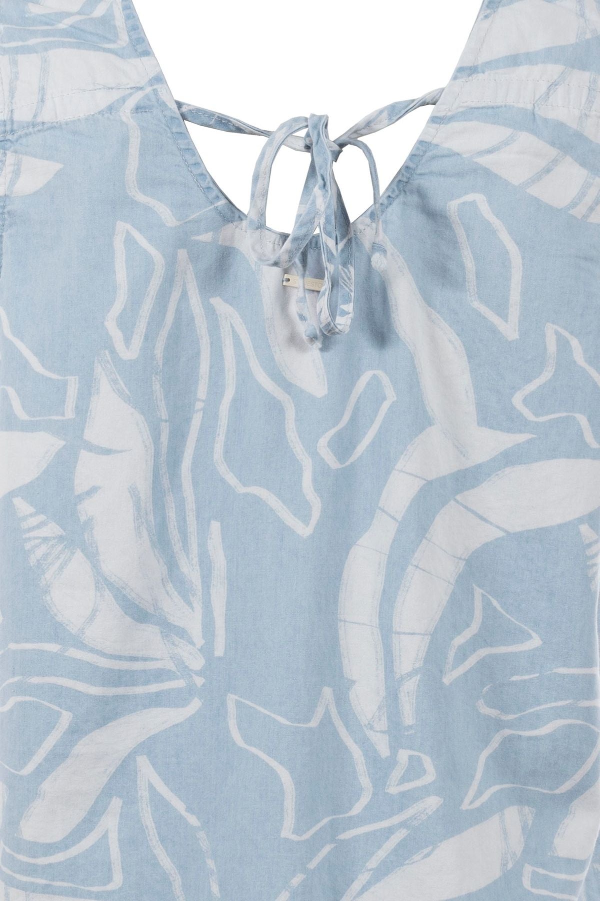 Diese ärmellose Chambray-Bluse mit Rundhalsausschnitt besticht durch einen floralen Allover-Print in Weiß. Der Print verleiht der Bluse einen sommerlichen Touch. Sie lässt sich optimal mit der passenden S'questo-Shorts kombinieren und eignet sich perfekt für warme Tage.