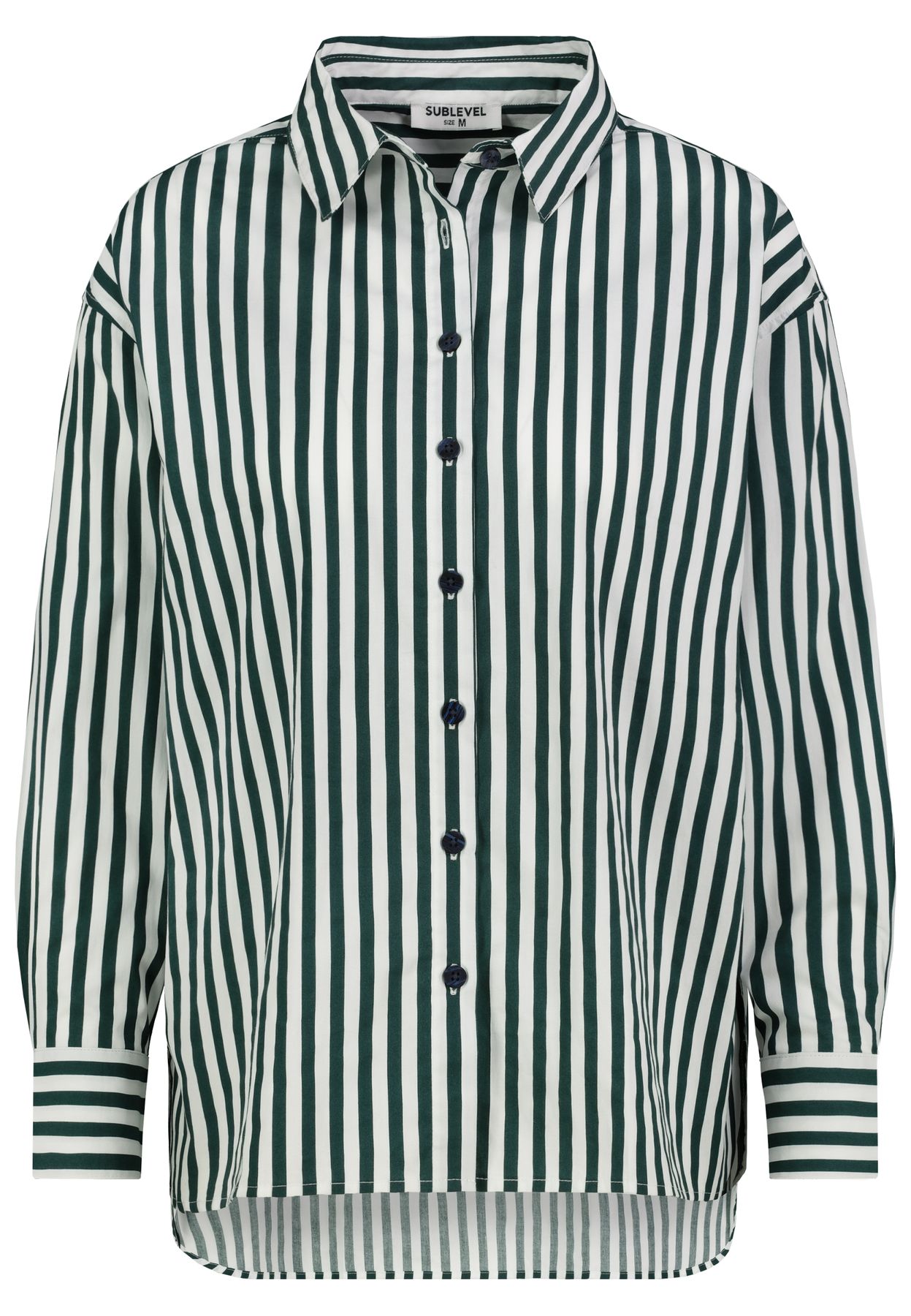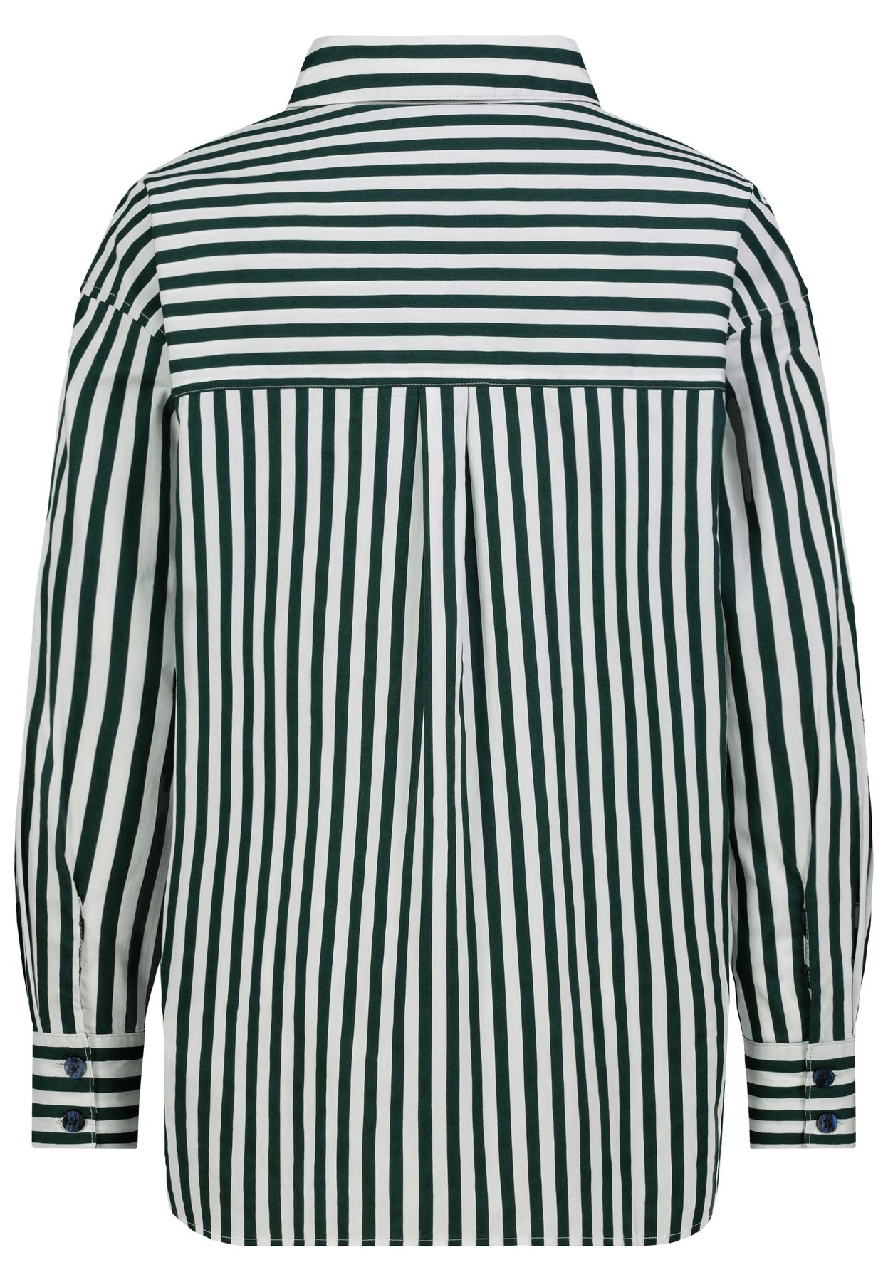 DOB Hemdbluse, überschnittene Schultern, Knopfleiste, Manschette mit Knopf, Hemdkragenabgerundeter Saum, RT länger als VT, Rückenpasse