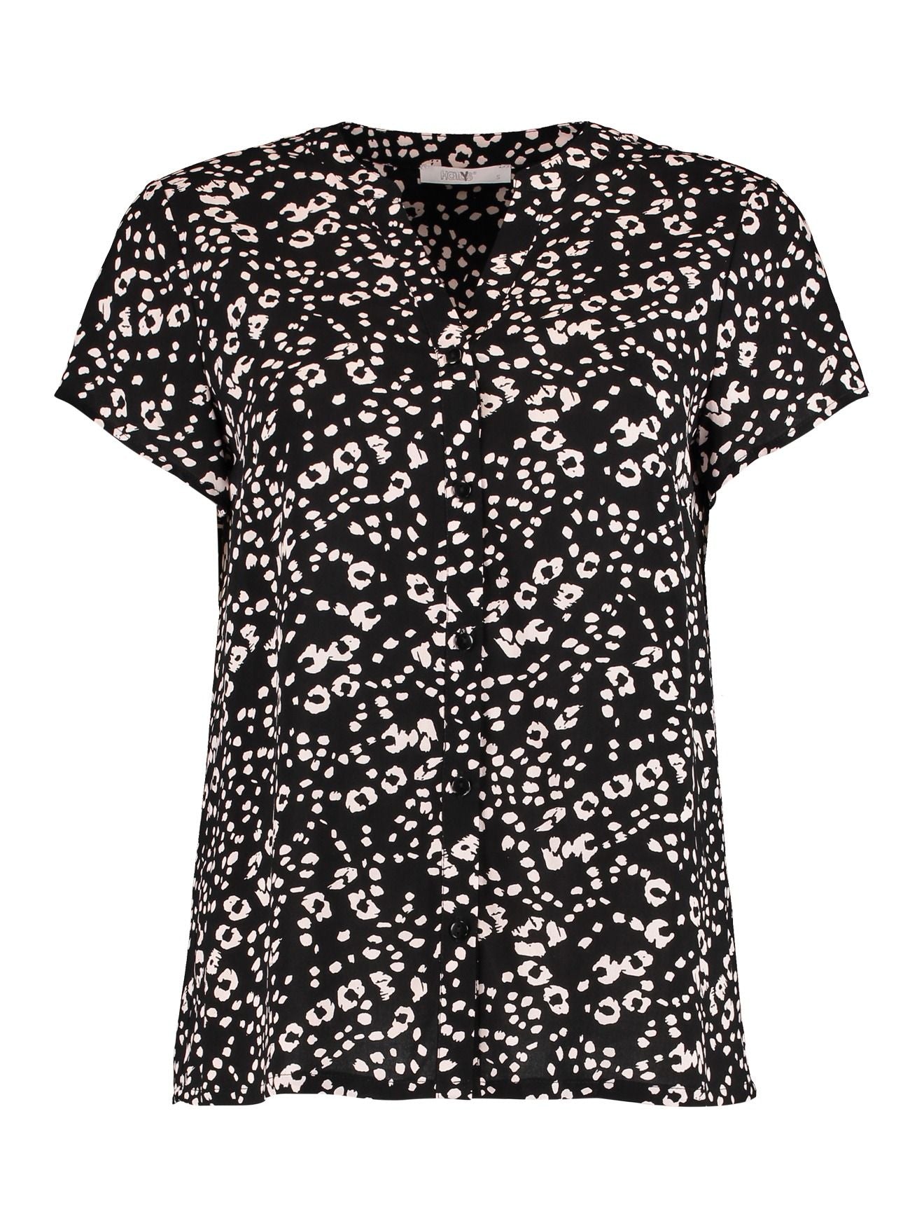 Kurzarm V-Ausschnitt Bluse mit All-Over-Print