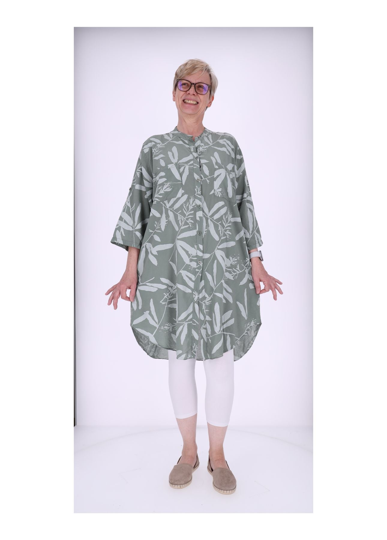 Dank ihres modischen Oversize-Schnitts fällt die Bluse locker und schmeichelnd. Sie kommt in praktischer One Size und passt ideal für Größen 38 bis 48 – für ein bequemes, unkompliziertes Tragegefühl mit viel Bewegungsfreiheit.