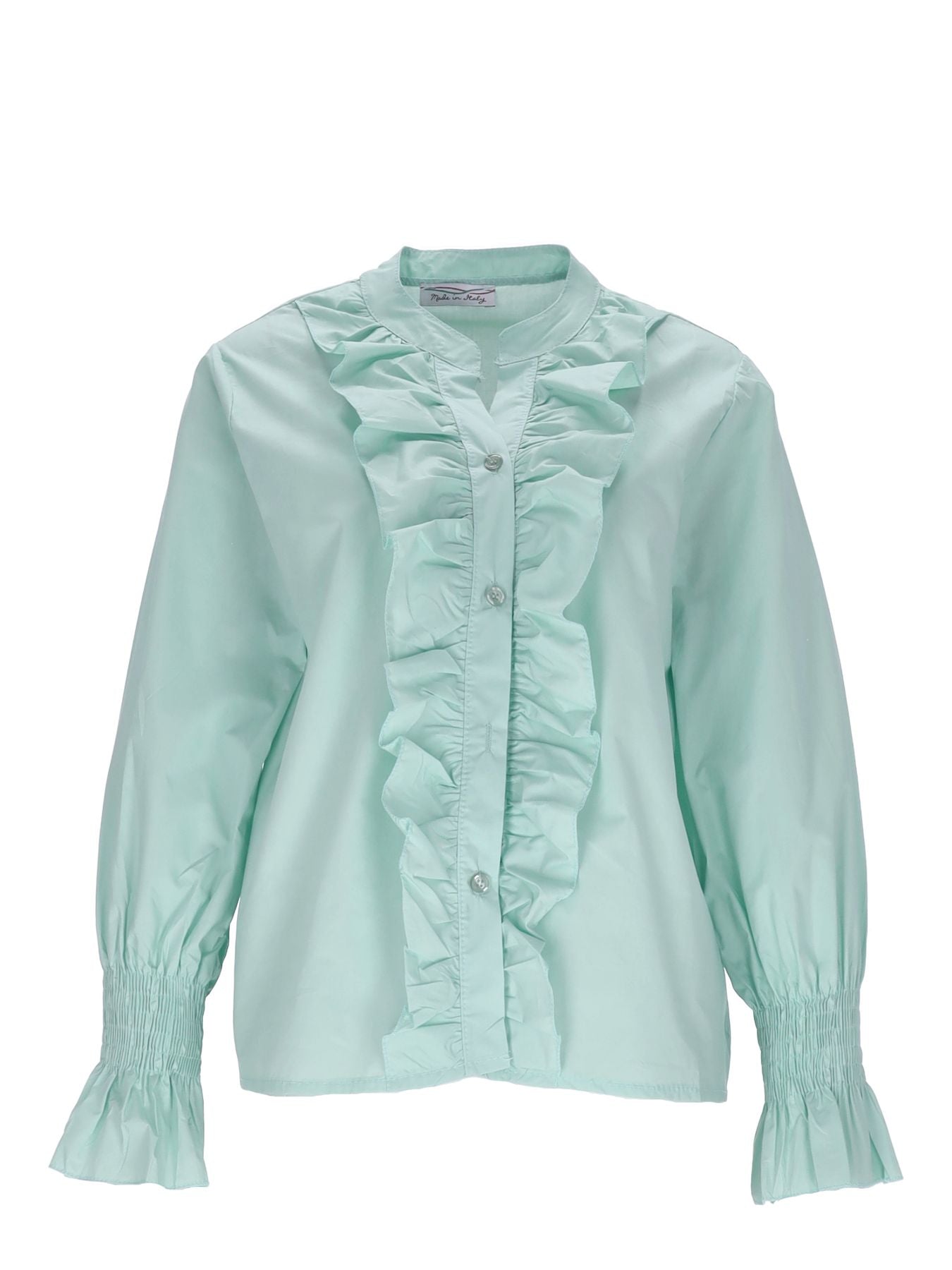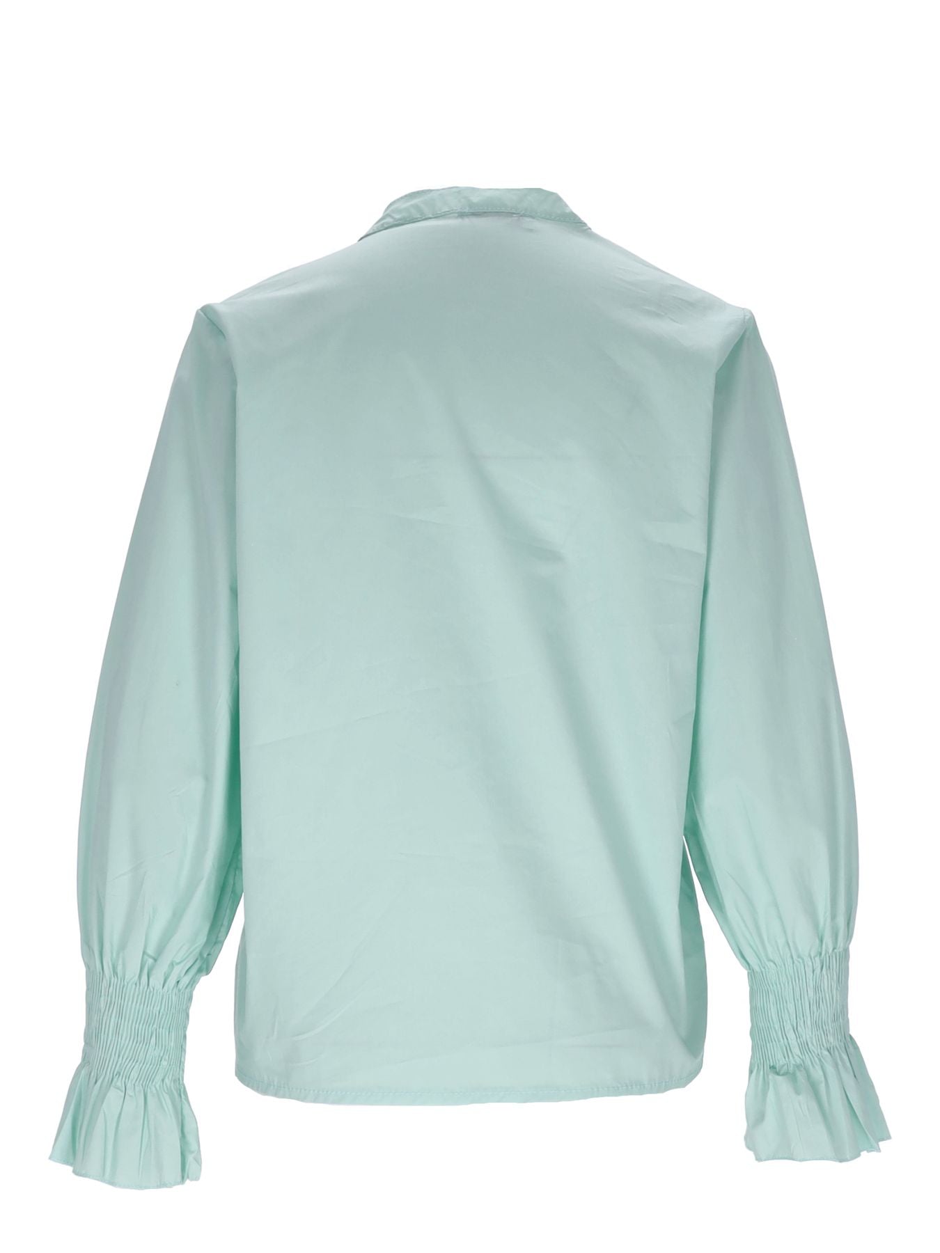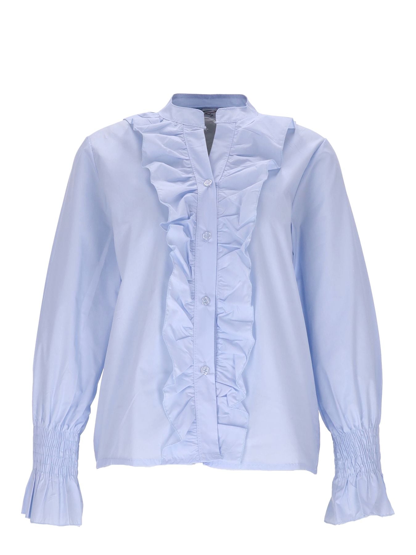 Der gesmokte lange Arm verleiht dieser Bluse eine herrlich bequeme Passform, während die durchgehende Knopfleiste eine mühelose Anpassung ermöglicht und zugleich einen Hauch von Eleganz verleiht. Das besondere Highlight dieser Bluse sind die zarten Rüschen entlang der Knopfleiste, die für eine verspielte und feminine Note sorgen und Ihren Look perfekt abrunden. Ob im Büro oder bei besonderen Anlässen, diese vielseitige Bluse lässt sich mühelos kombinieren und verleiht jedem Outfit eine stilvolle Note.