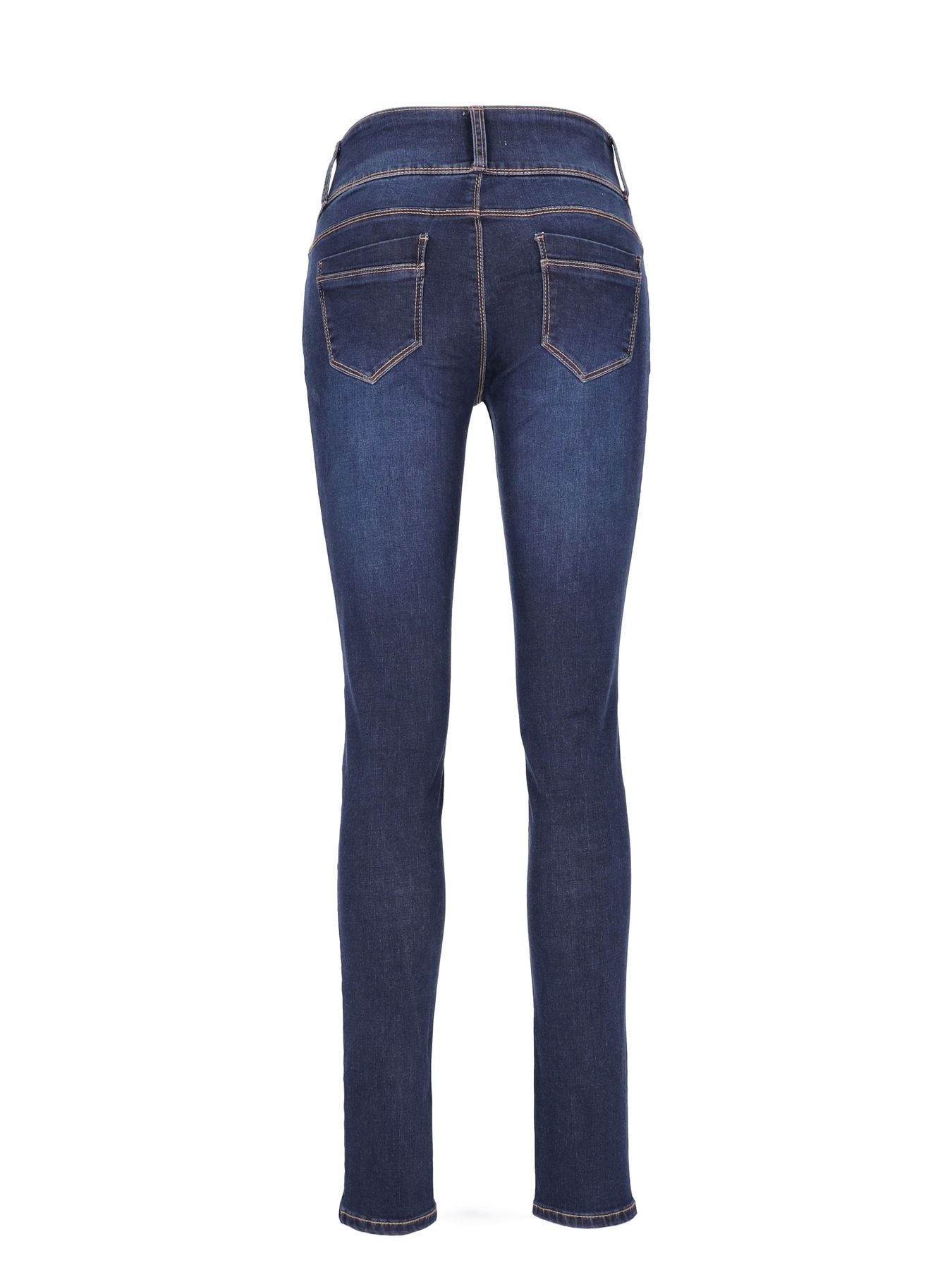 Setze ein stilvolles Statement mit unserer hoch geschnittenen 5-Pocket Skinny Jeans – designt für Frauen, die Mode und Komfort lieben. Der breite Bund mit edler 3-Knopf-Schließe sorgt nicht nur für einen sicheren Sitz, sondern schmeichelt auch der Silhouette und setzt deine Taille perfekt in Szene.