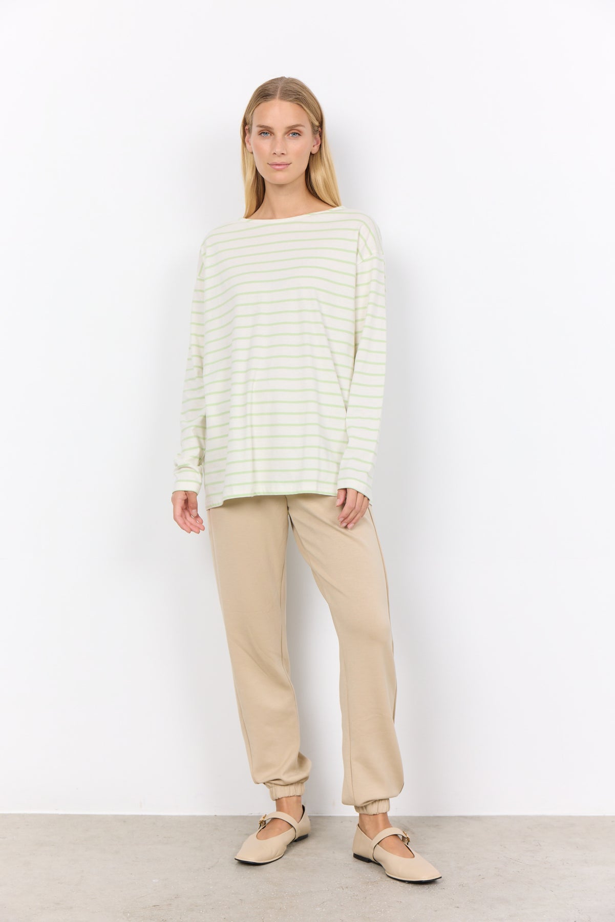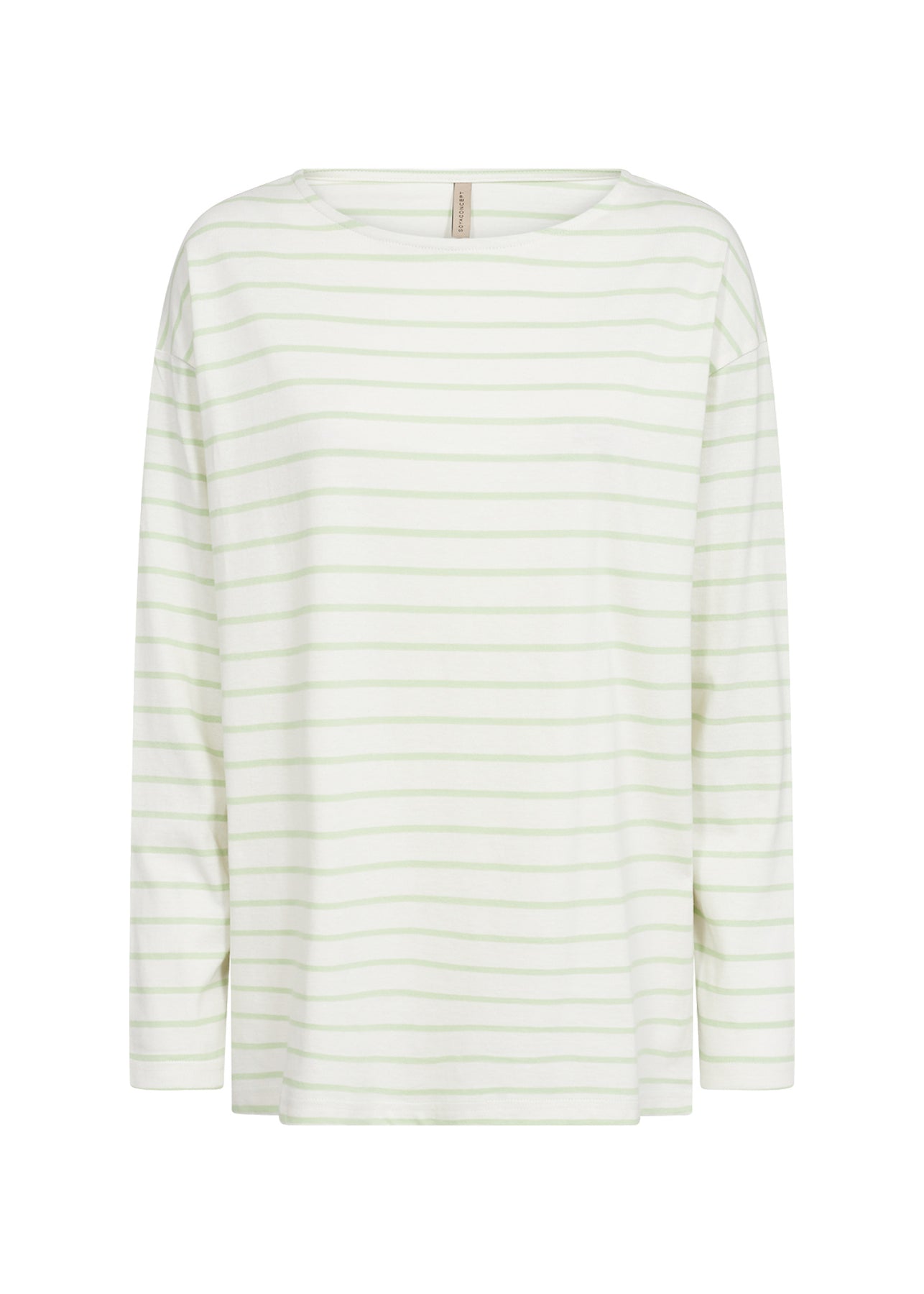 Dieses Damen-Langarmshirt vereint zeitlose Eleganz mit einem Hauch von Verspieltheit. Hergestellt aus hochwertiger, reiner Baumwolle bietet es nicht nur ein angenehmes Tragegefühl, sondern auch eine atmungsaktive und hautfreundliche Qualität.Das Shirt präsentiert sich in einem frischen Grün mit feinen Streifen, die dem Design eine subtile Dynamik verleihen. Der klassische Rundhalsausschnitt betont die Einfachheit und Vielseitigkeit des Shirts, das sich mühelos in verschiedene Outfits integrieren lässt. Pflegehinweise