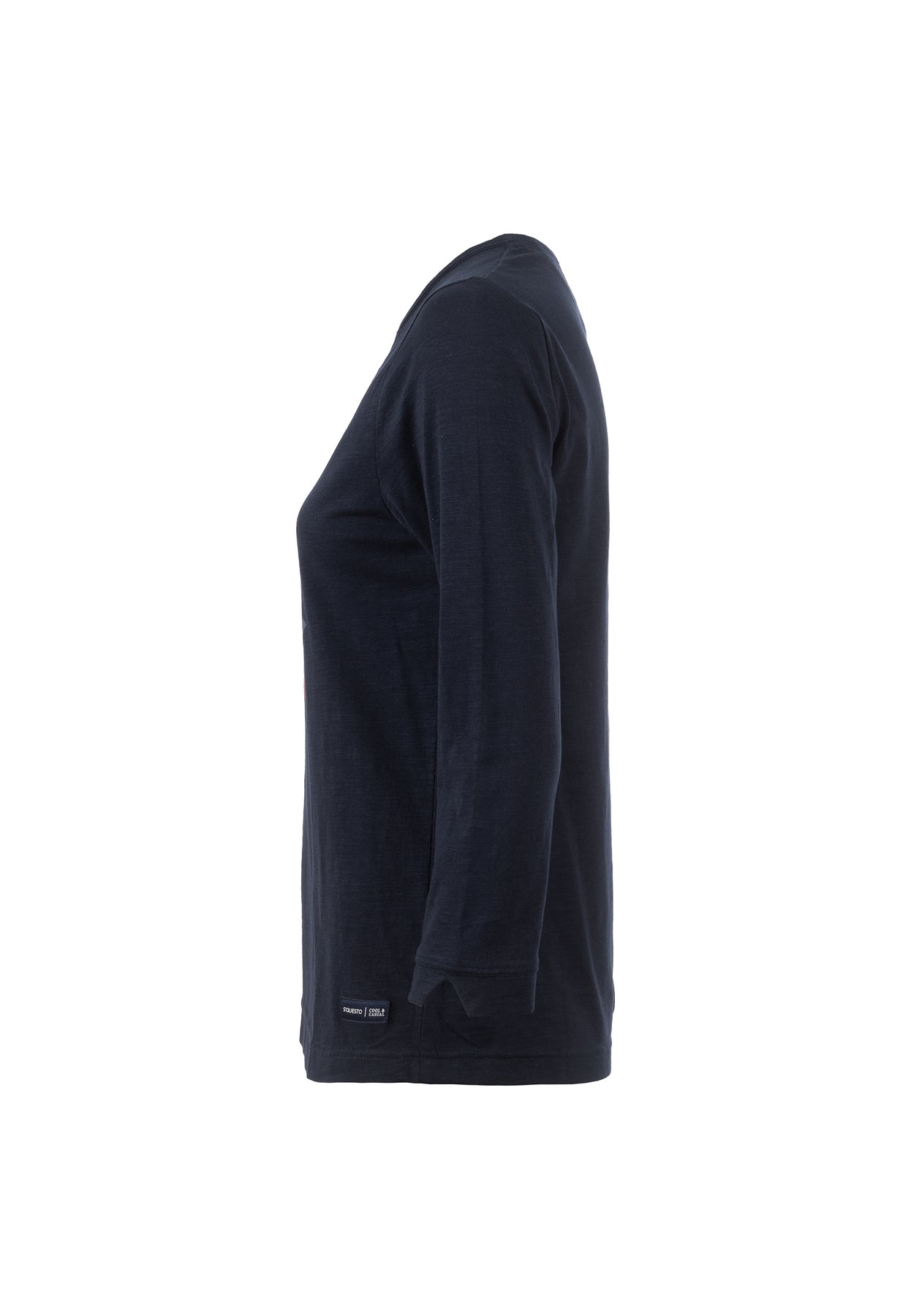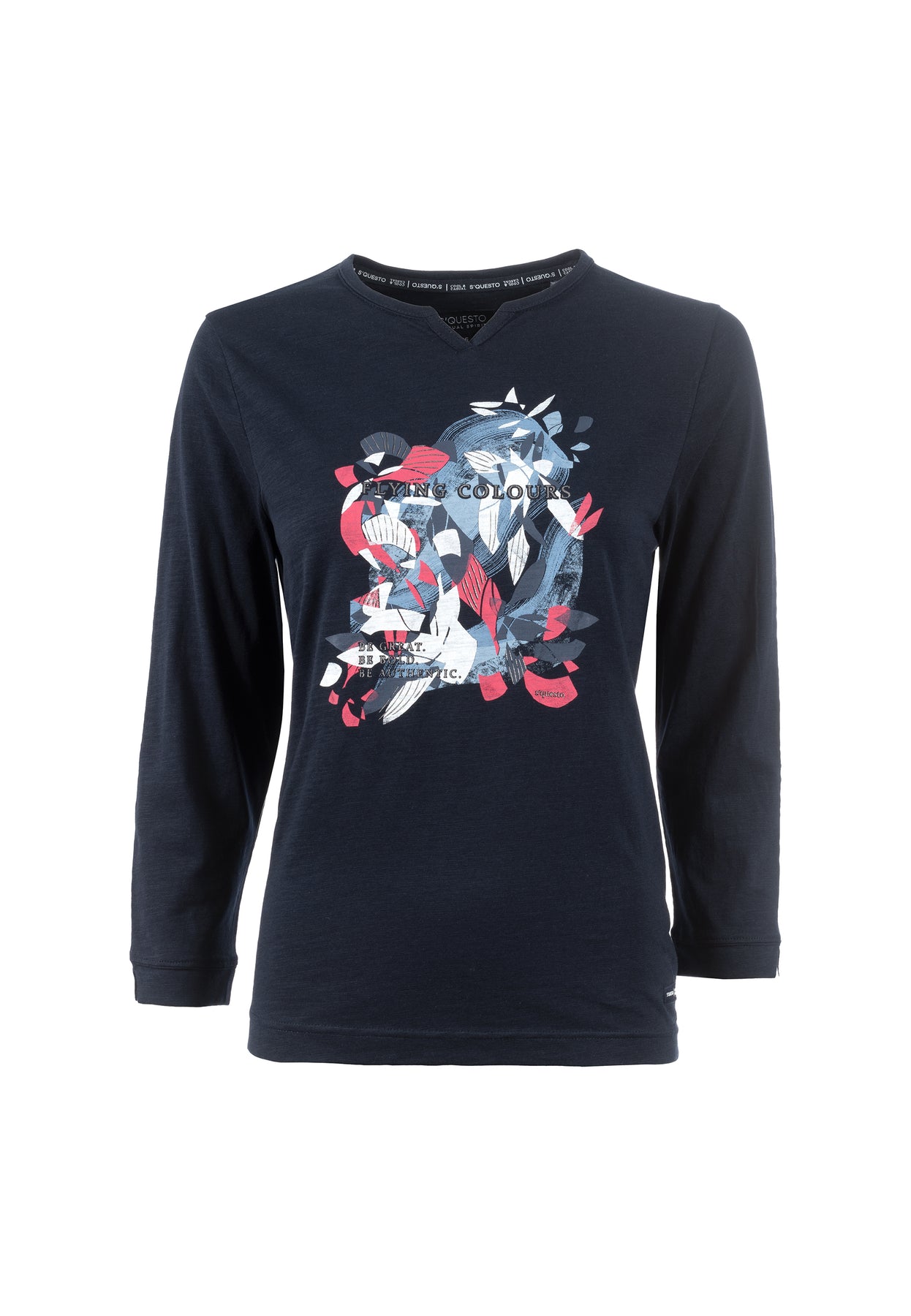 Feminines Shirt mit 3/4-Arm und interessantem V-Detail am Ausschnitt. Zum Hingucker wird das Shirt durch den floralen Print in ausgewählten Farbabstufungen.