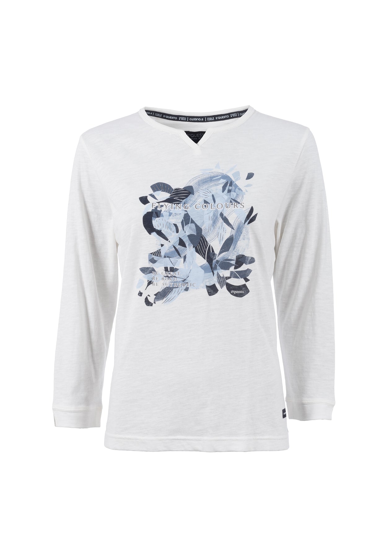 Feminines Shirt mit 3/4-Arm und interessantem V-Detail am Ausschnitt. Zum Hingucker wird das Shirt durch den floralen Print in ausgewählten Farbabstufungen.