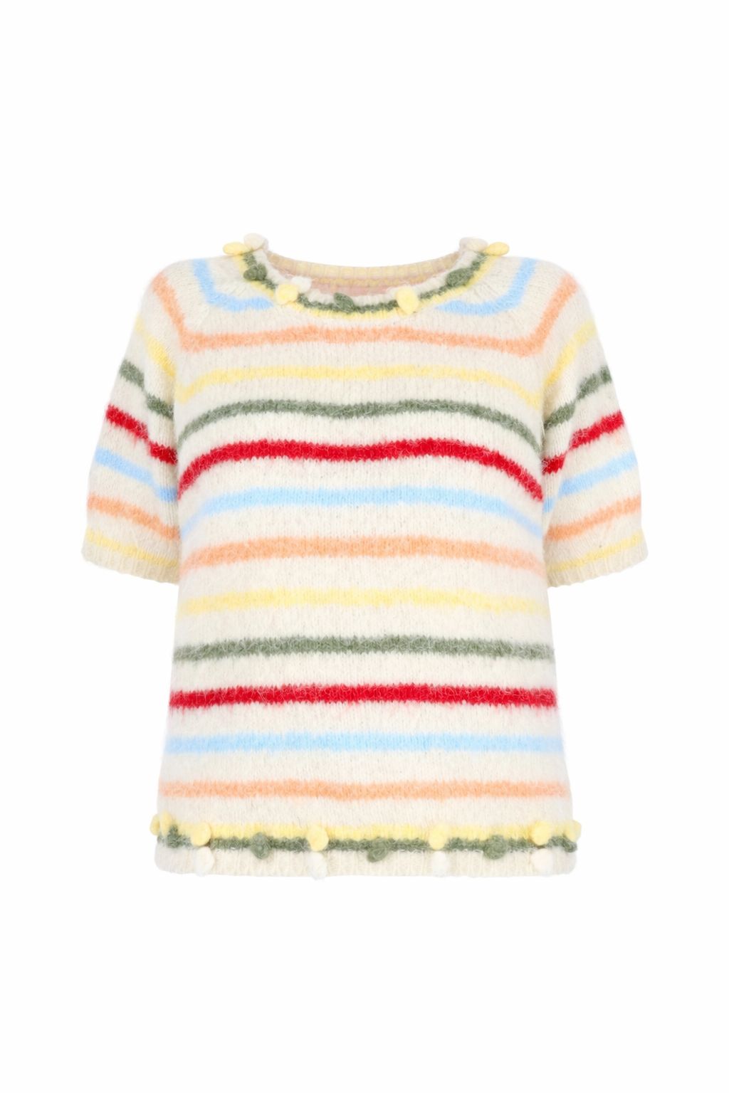 T-Shirt Damen Strick Ringel Bommeln