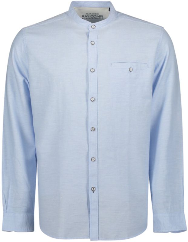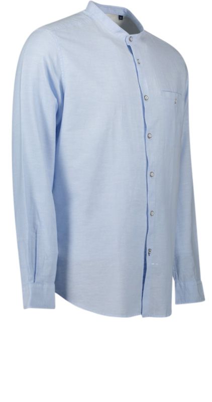 Langarm Hemd mit Stehkragen. Paspel-Brusttasche mit Knopf.