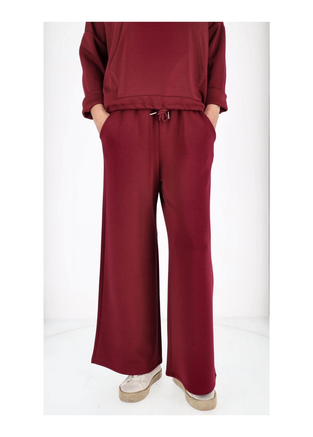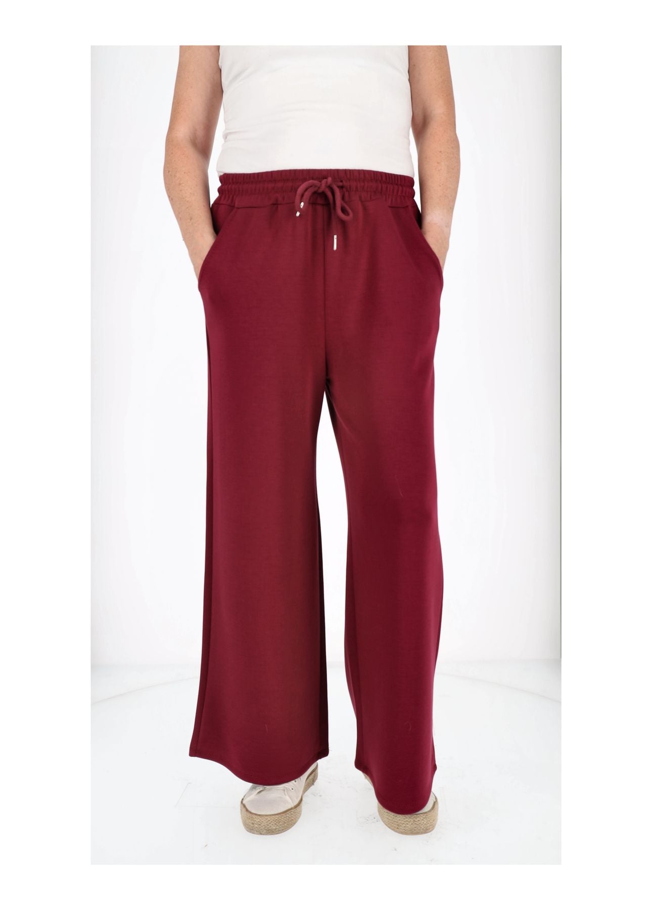 Unsere weite Damenhose vereint Komfort und Eleganz perfekt. Der hochwertige Materialmix aus 50 % Viskose, 45 % Polyester und 5 % Elasthan sorgt für ein angenehmes Tragegefühl, Formstabilität und fließenden Fall. Der elastische Gummibund mit Zugband passt sich optimal an deine Figur an, während die seitlichen Taschen praktisch und stylisch sind.
