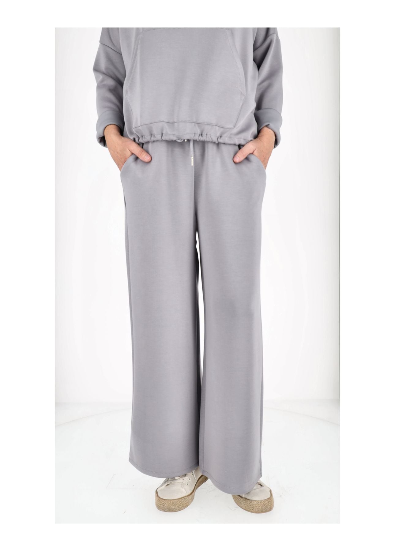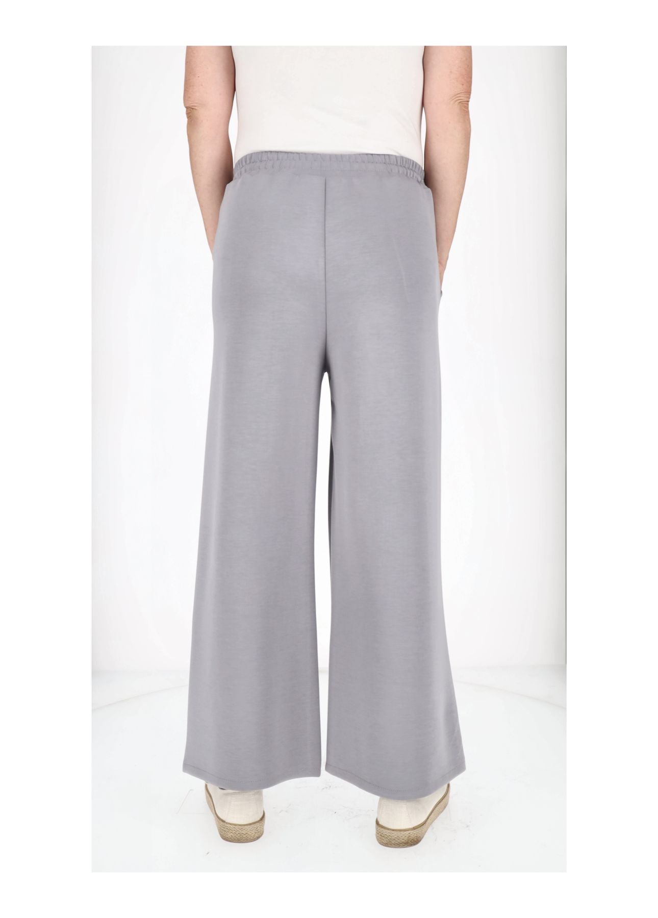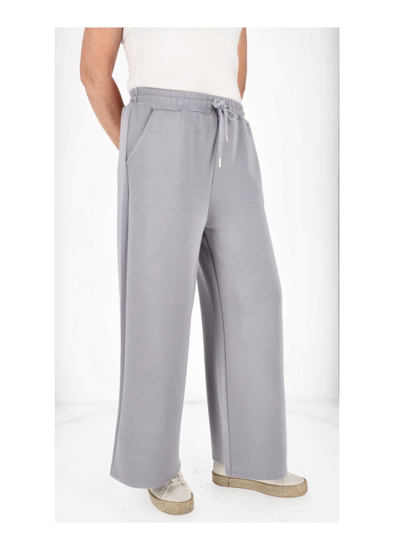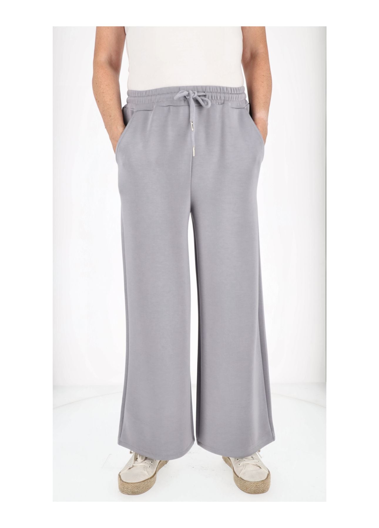 Unsere weite Damenhose vereint Komfort und Eleganz perfekt. Der hochwertige Materialmix aus 50 % Viskose, 45 % Polyester und 5 % Elasthan sorgt für ein angenehmes Tragegefühl, Formstabilität und fließenden Fall. Der elastische Gummibund mit Zugband passt sich optimal an deine Figur an, während die seitlichen Taschen praktisch und stylisch sind.