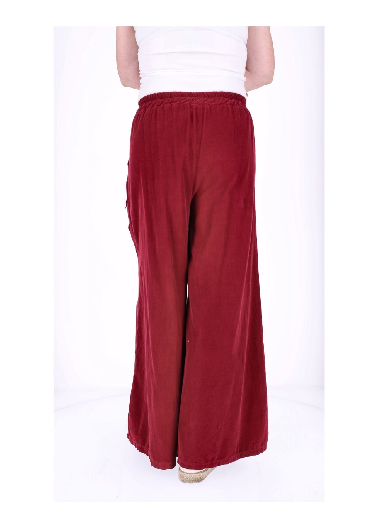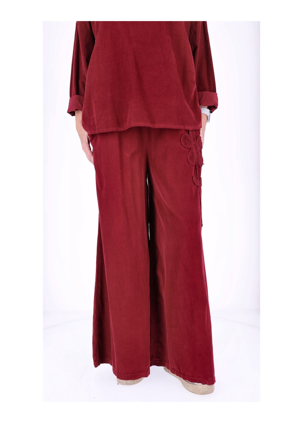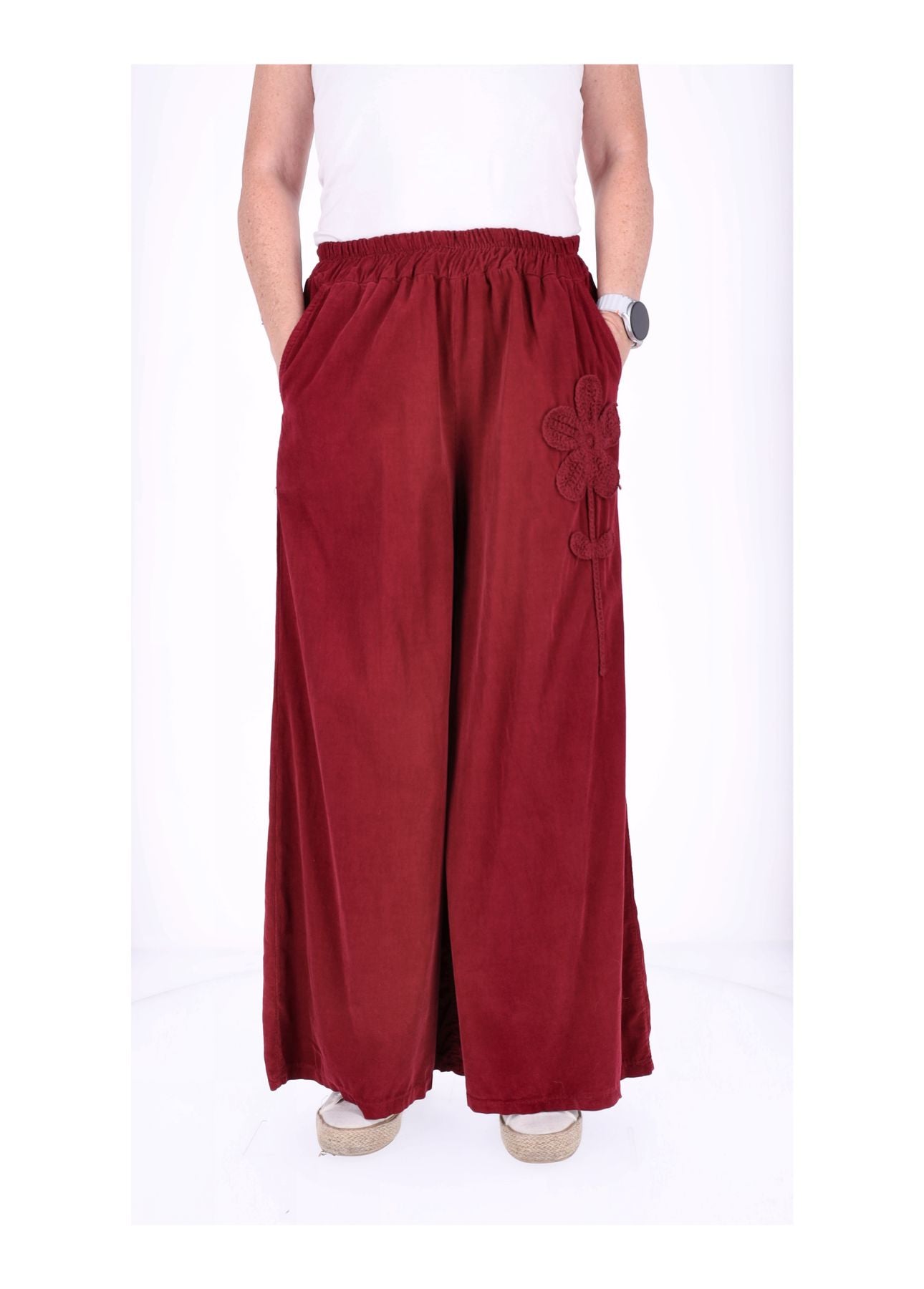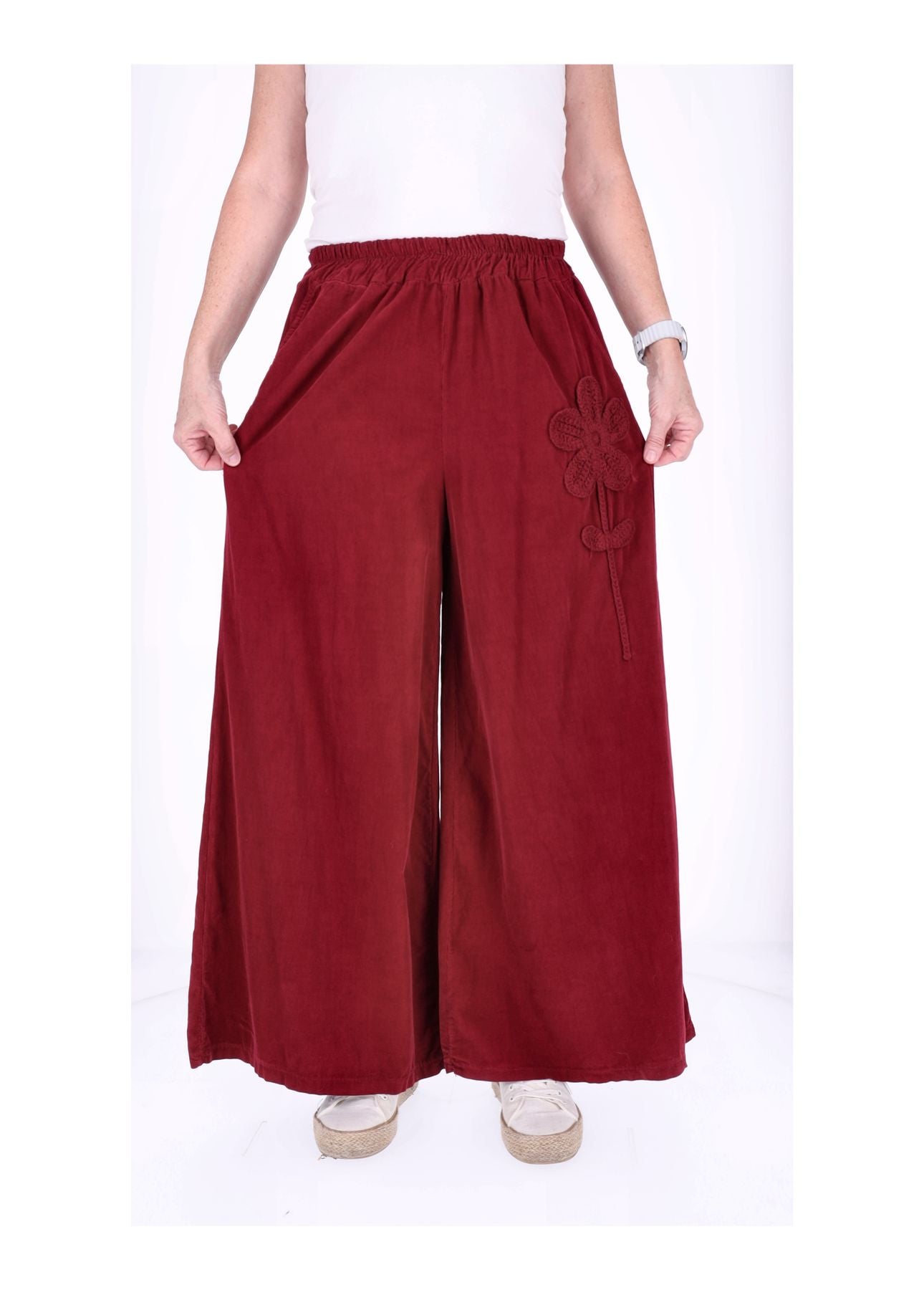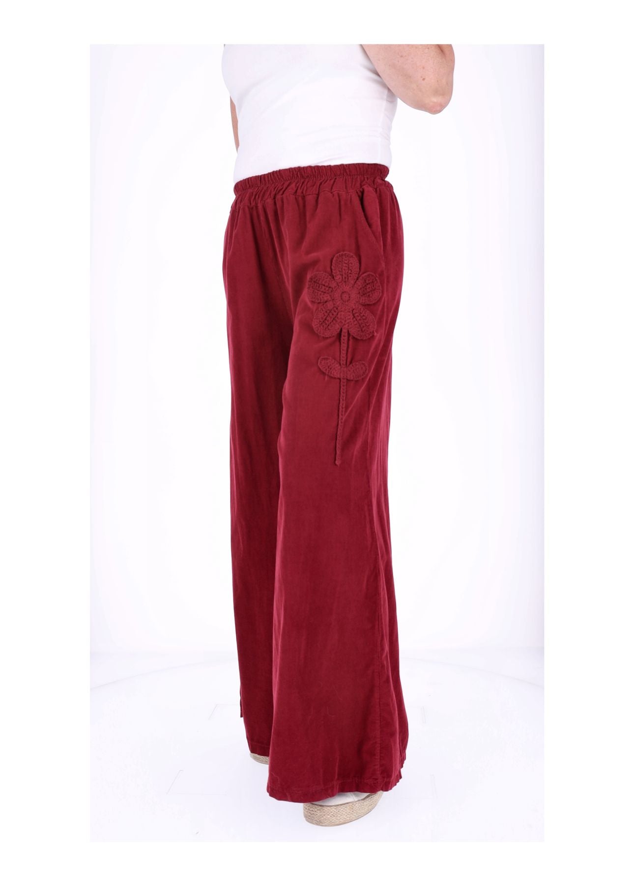 Hose Damen – Weites Bein aus Babycord mit Blumen-Detail