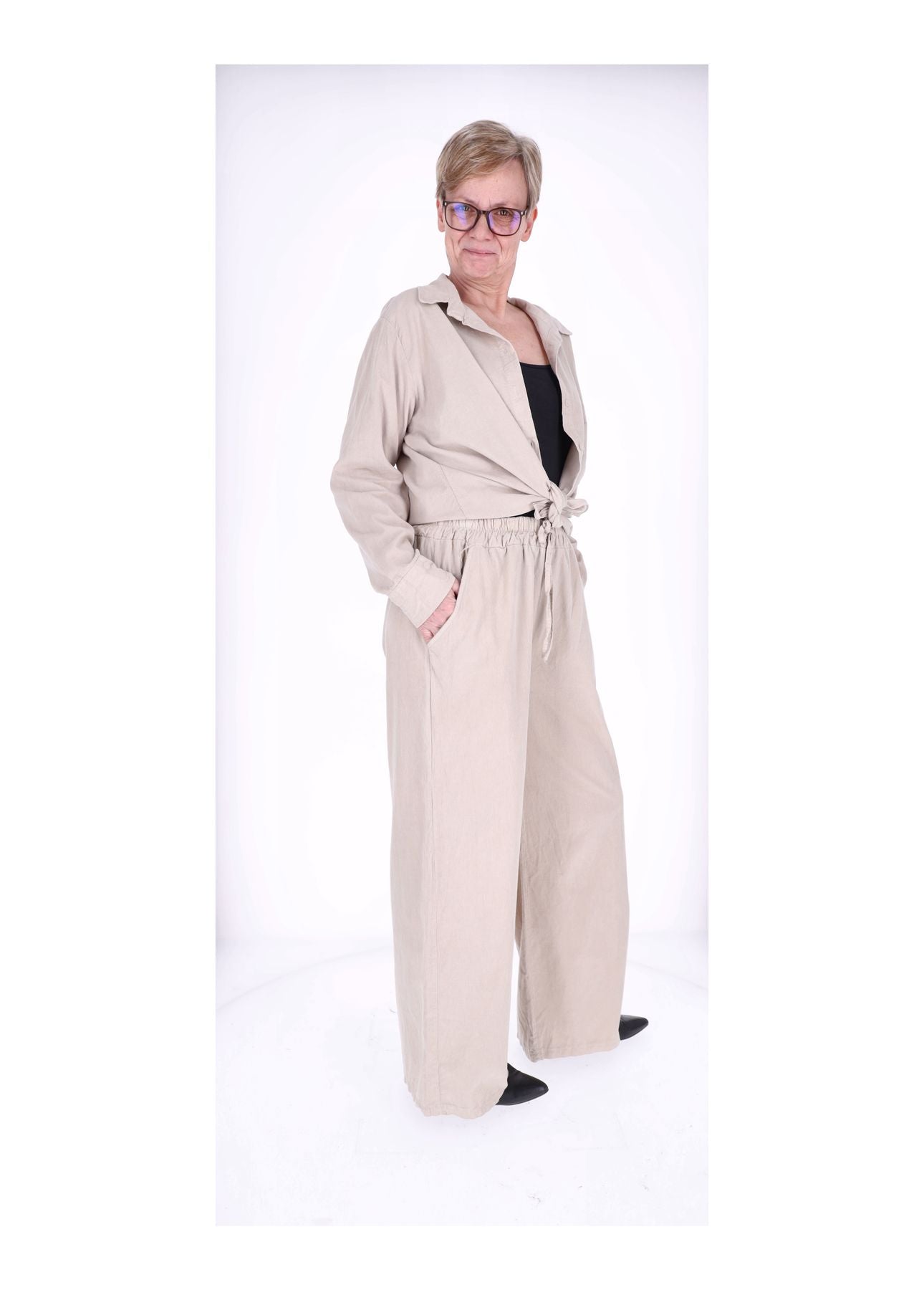Schnitt: Wide Leg, hoher Bund, elastisch mit Kordelzug