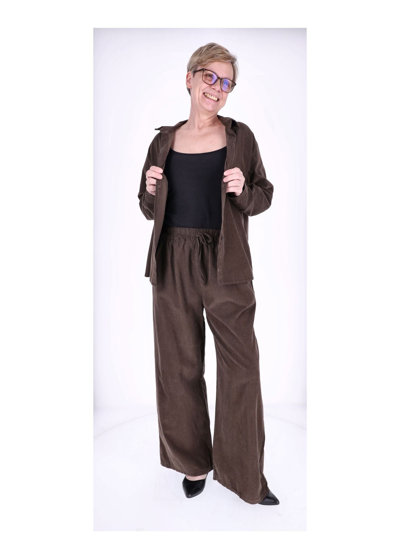 Styling-Tipp: Für einen harmonischen, modernen Look mit dem passenden Cord-Hemd kombinieren – so entsteht ein lässiger monochromer Style.