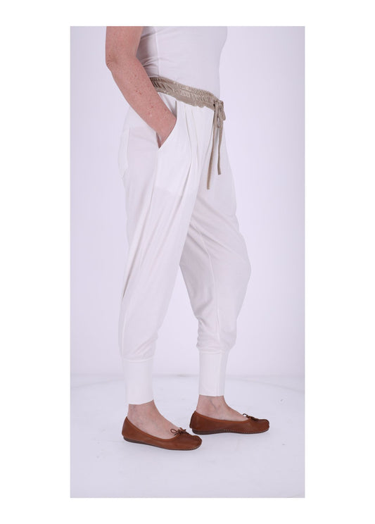 Hose Damen Häkeleinsatz am Beinende goldbesprüht