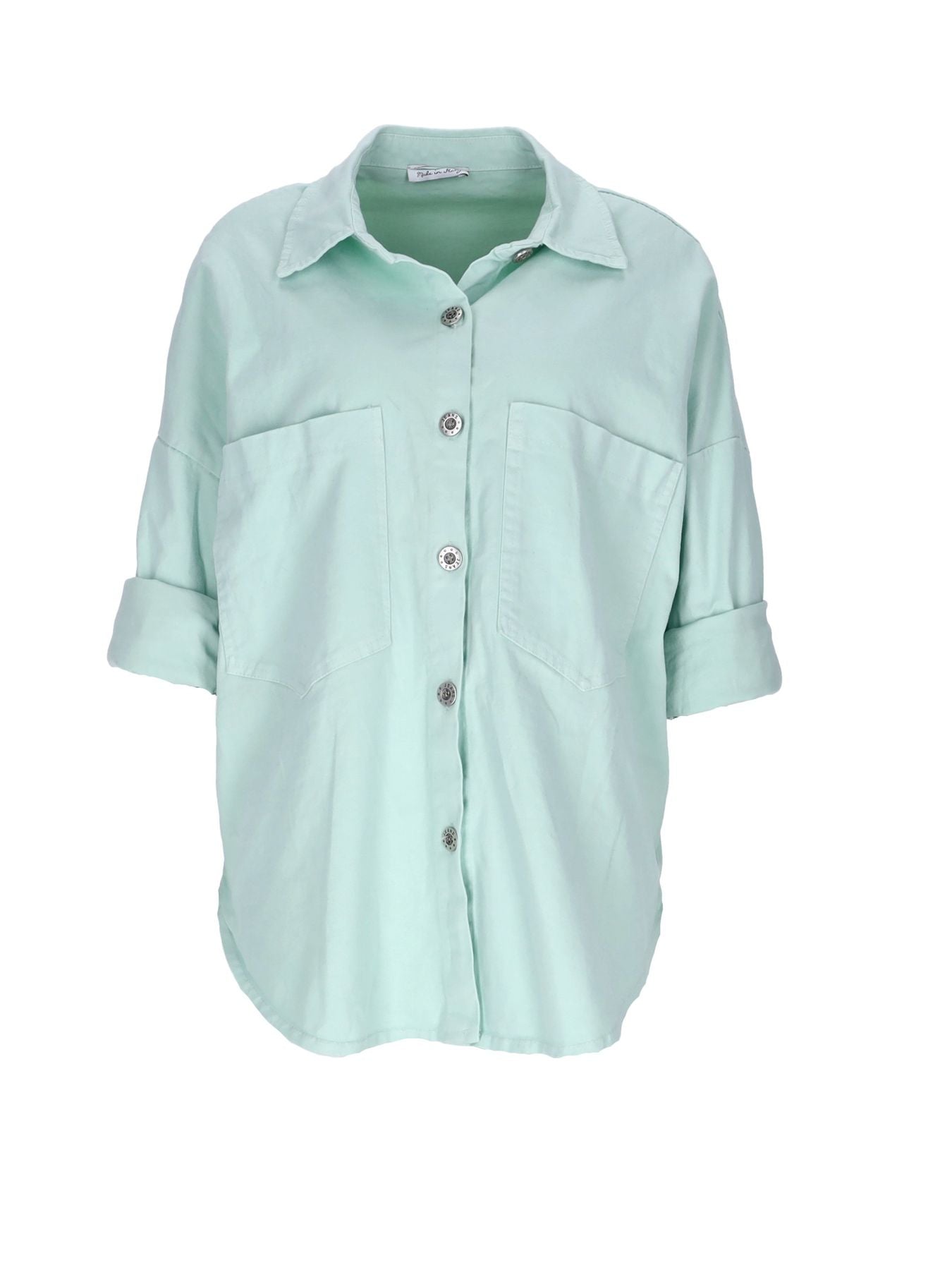 Unsere Damen Blusenjacke im Oversized-Schnitt ist ein Must-Have für jede modebewusste Frau. Mit ihrem großzügigen Schnitt bietet sie nicht nur ultimativen Komfort, sondern auch einen modernen und lässigen Look, der zu jeder Gelegenheit passt. Die Ärmel zum Zuknöpfen oder Umkrempeln bieten Ihnen die Möglichkeit, Ihren Look je nach Stimmung oder Anlass anzupassen. Tragen Sie sie entweder lang für einen eleganten Look oder krempeln Sie die Ärmel hoch für einen lässigen Touch. Die zwei Brusttaschen verleihen der Jacke nicht nur eine praktische Note, sondern auch einen Hauch von Raffinesse. Perfekt, um Ihre Essentials sicher zu verstauen oder um Ihrem Outfit eine zusätzliche Dimension zu verleihen.