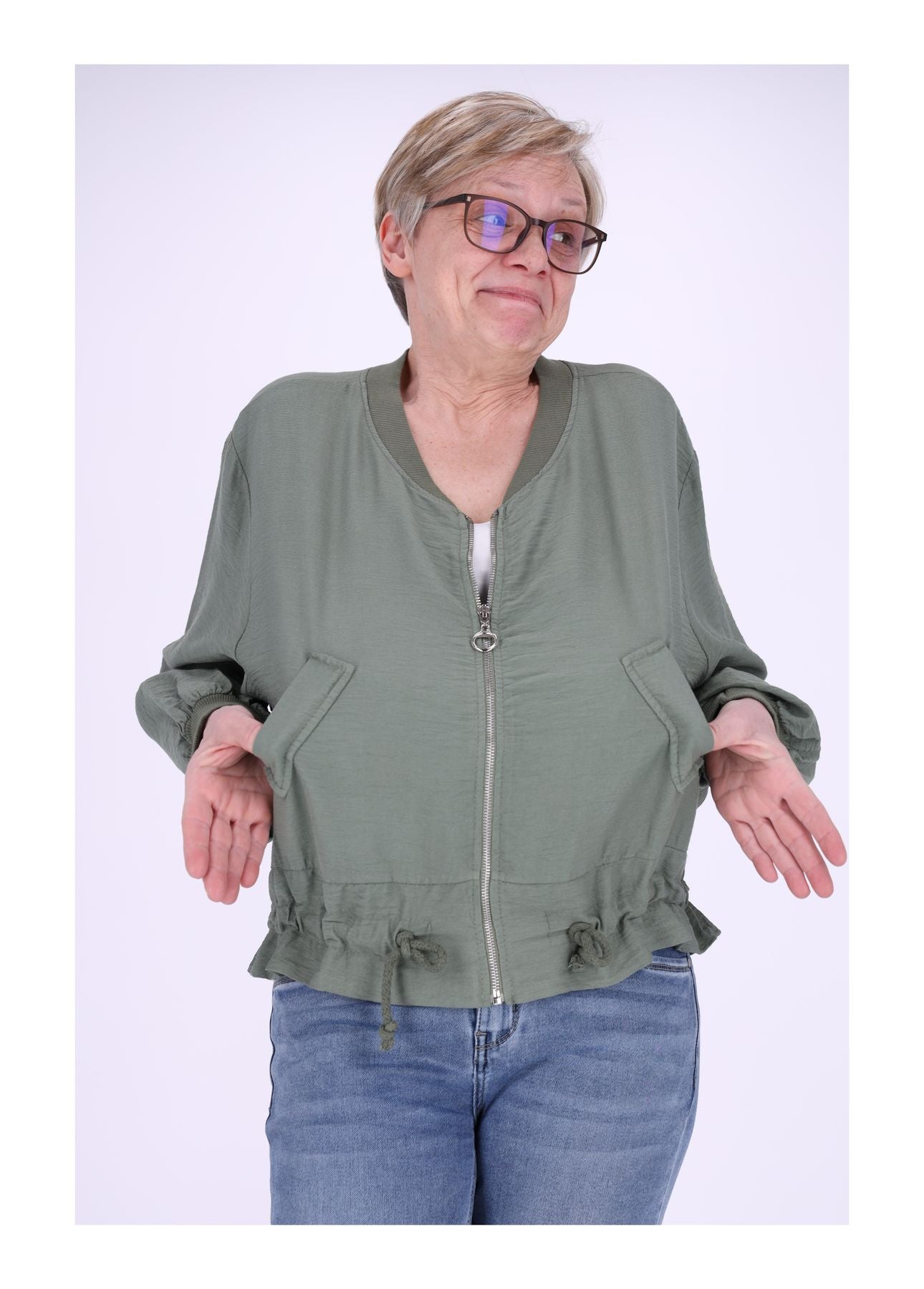 Diese Damen Blouson Jacke überzeugt mit ihrem lockeren Schnitt , der für einen entspannten und bequemen Tragekomfort sorgt. Die zwei aufgesetzten Taschen bieten nicht nur praktischen Stauraum, sondern setzen auch einen coolen Akzent im Design.