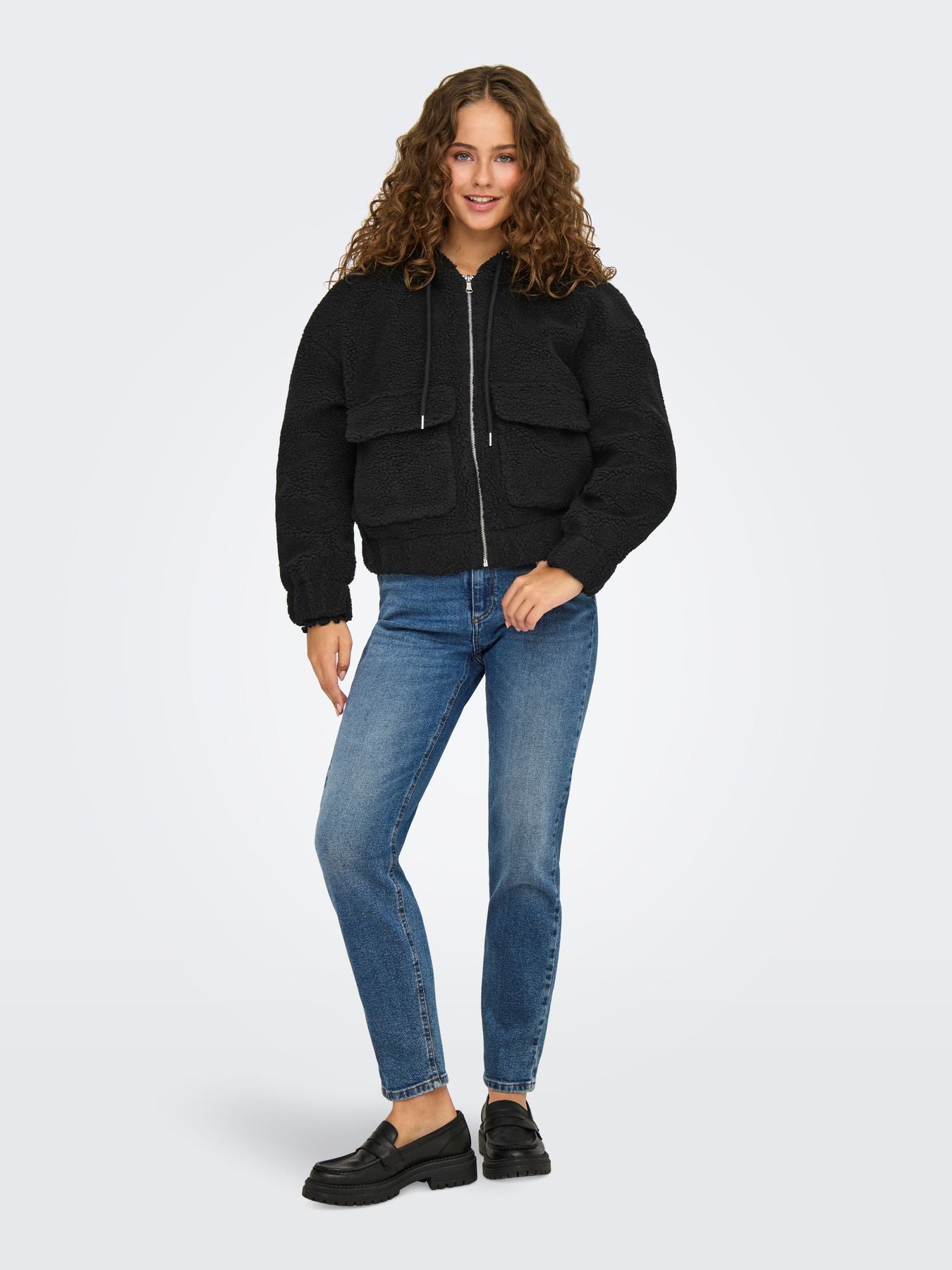 Verbinde die Jahreszeiten mit einer Übergangsjacke, die für einen bequemen und stylishen Look sorgt.Teddy ist ein weiches, flauschiges Material, das sich durch seine kuscheligen, geschwungenen Fasern auszeichnet, die für Komfort und Wärme sorgen. - Produkttyp : Teddyfell Jacke - Hals : Kapuze - Ärmel : Langarm - Manschetten : Winddichte Sturmmanschetten - Verschluss : Reißverschluss - Taschen : Taschen vorn