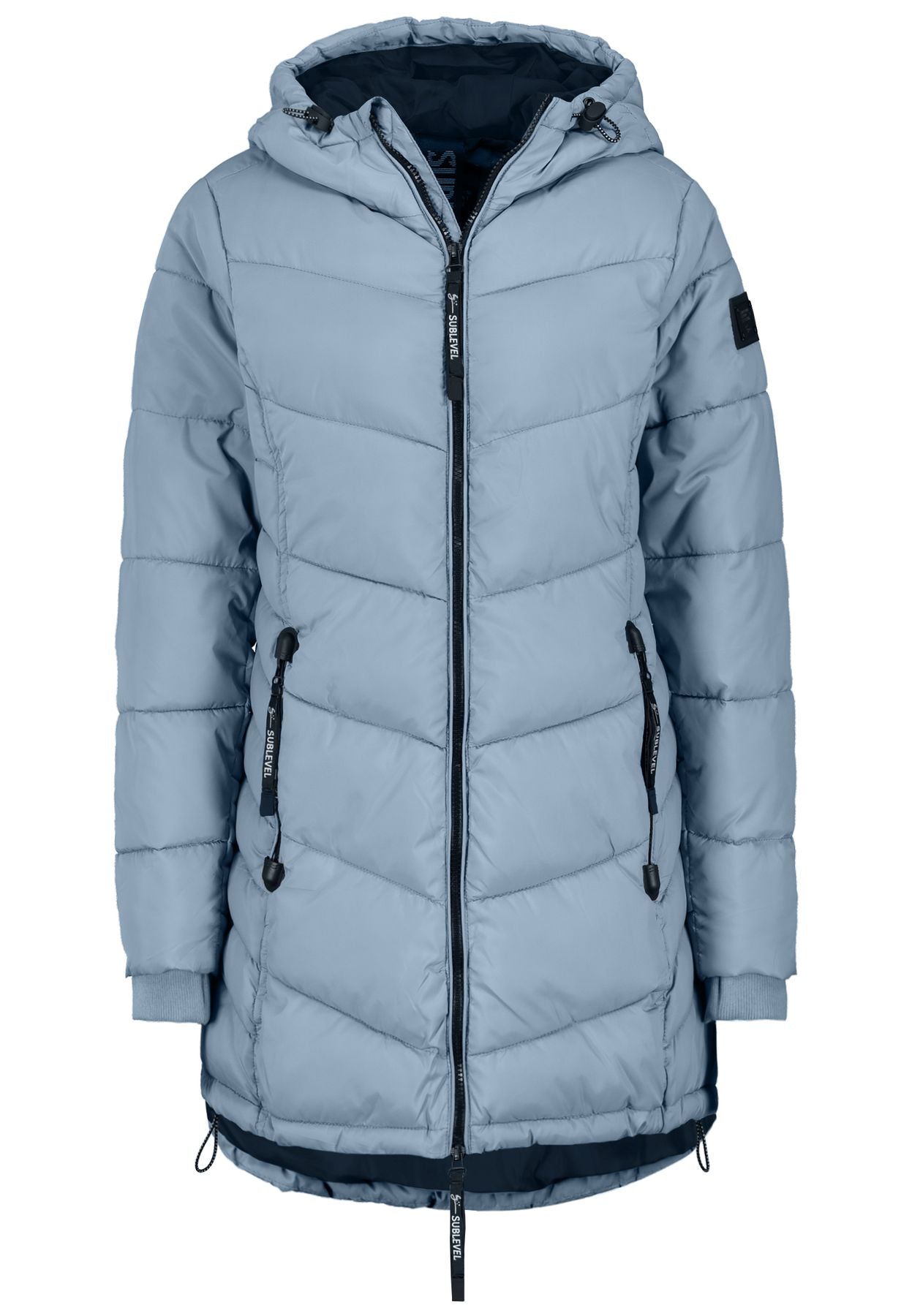 DOB Steppmantel, Kapuze, 2-Wege-RV RV-Taschen mit Plastikkappen, Tunnelzug an Kapuze und Saum, RT länger, Teilungsnähte in RT und VT