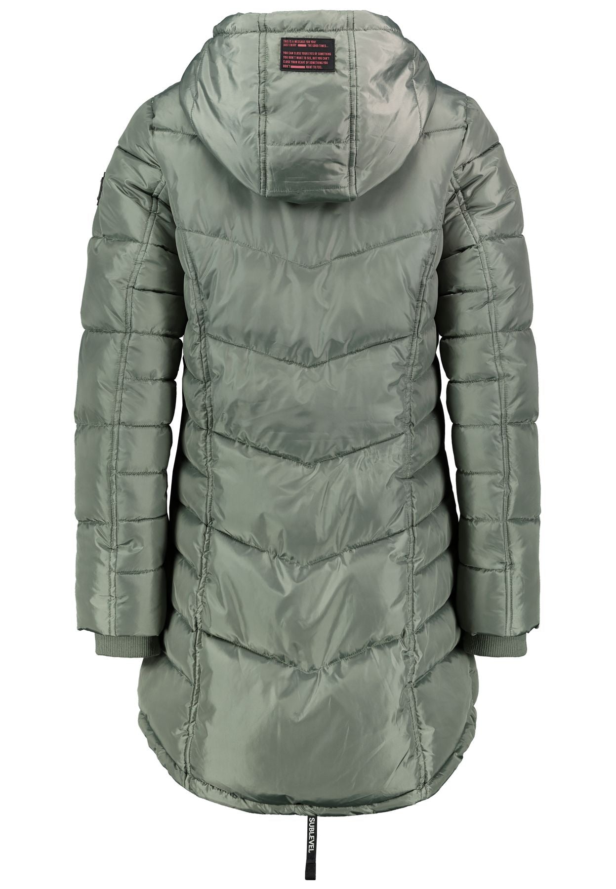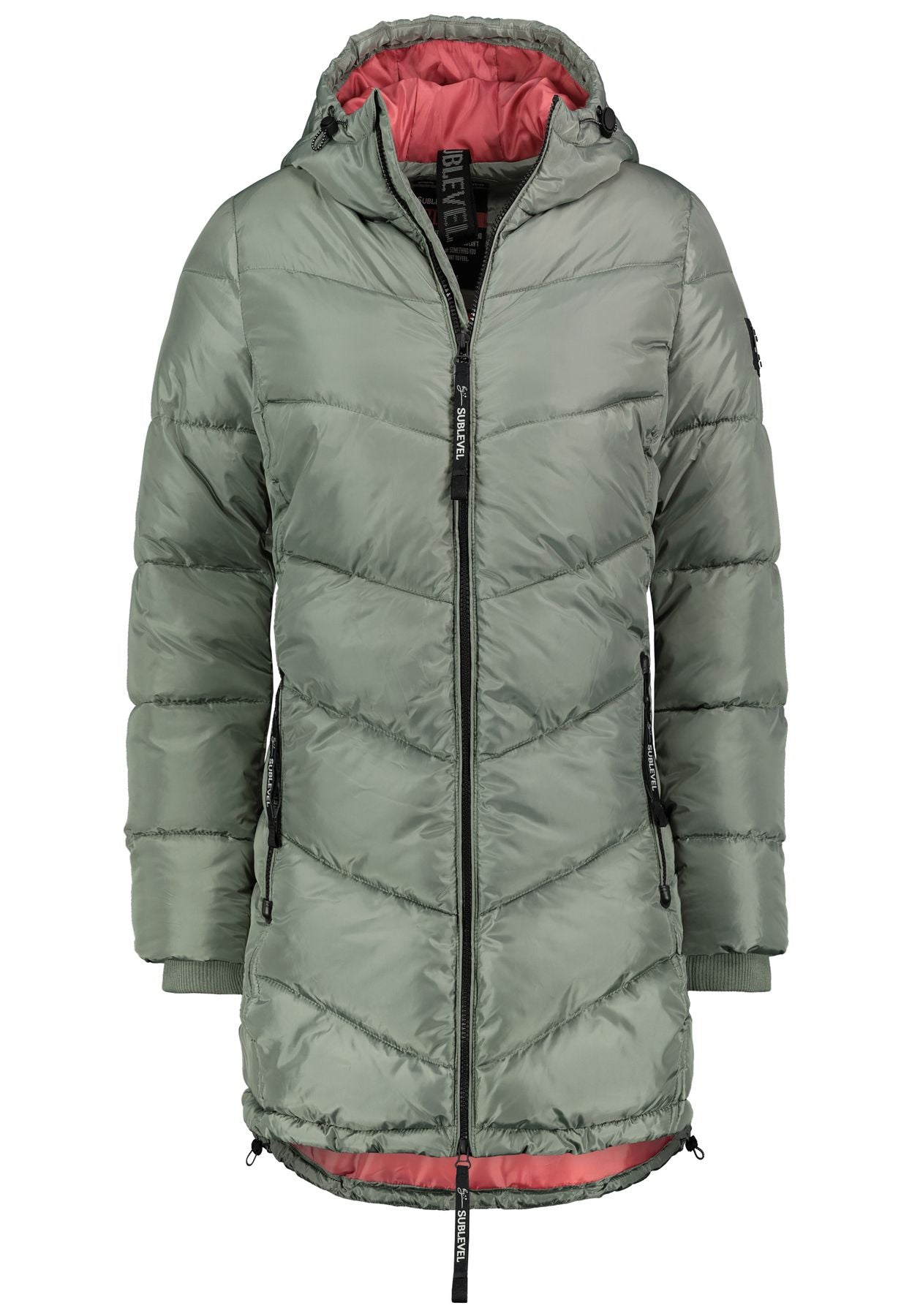 DOB Steppmantel, Kapuze, 2-Wege-RV RV-Taschen mit Plastikkappen, Tunnelzug an Kapuze und Saum, RT länger, Teilungsnähte in RT und VT