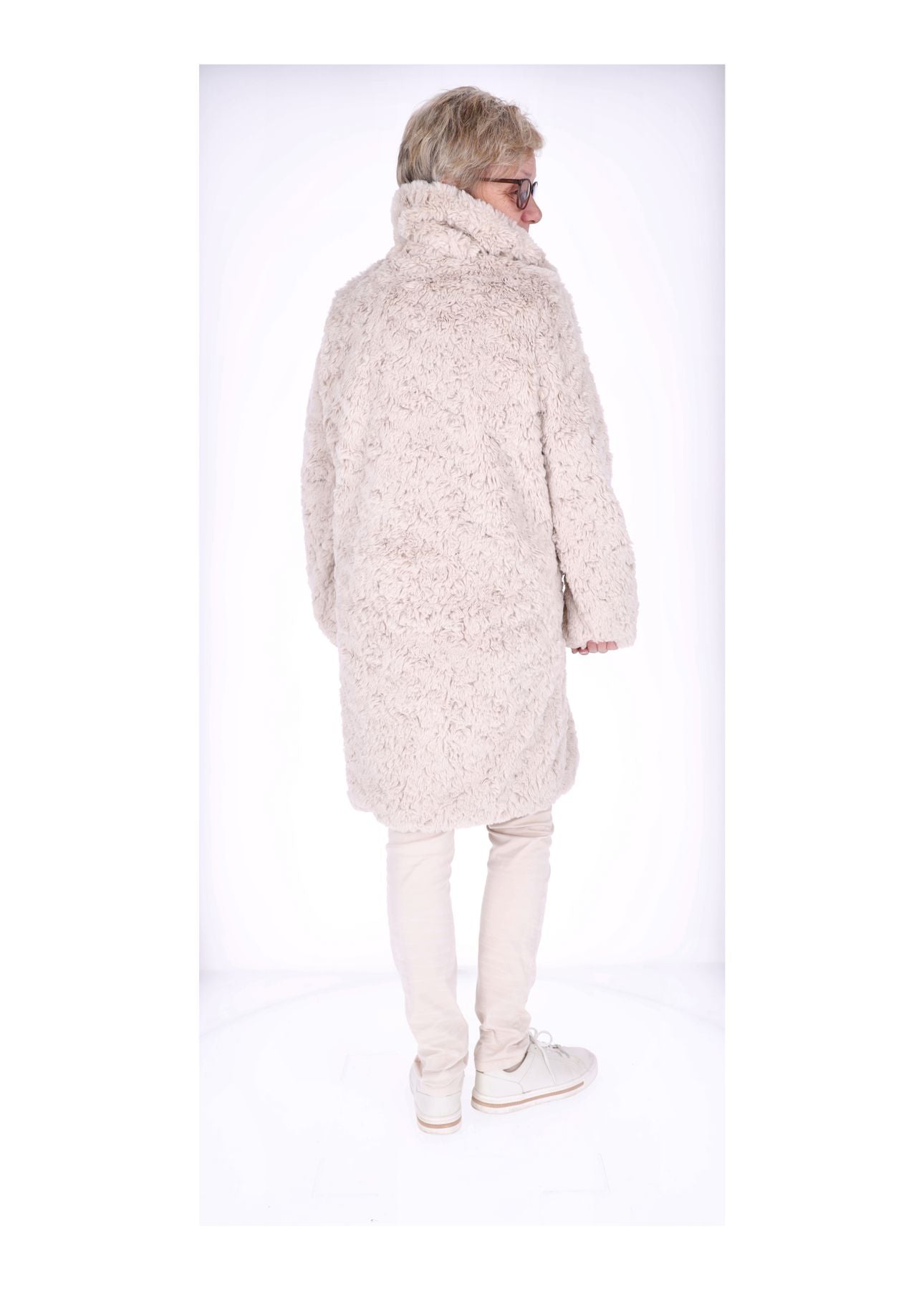 Dieser Mantel ist 100% aus hochwertigem Polyester gefertigt und fühlt sich unglaublich weich und flauschig an – wie eine kuschelige Umarmung an kalten Tagen. Die praktische Kapuze schützt dich zuverlässig vor Wind und Nieselregen, während die durchgehende Knopfleiste bis nach unten für optimalen Halt und eine elegante Silhouette sorgt.