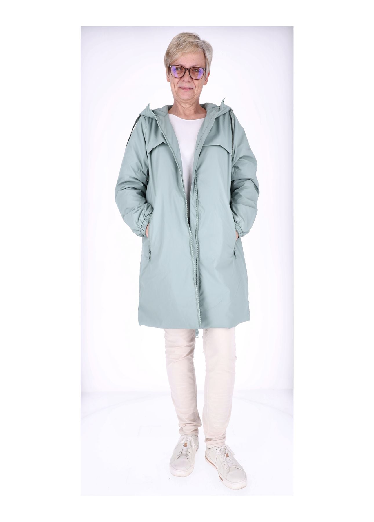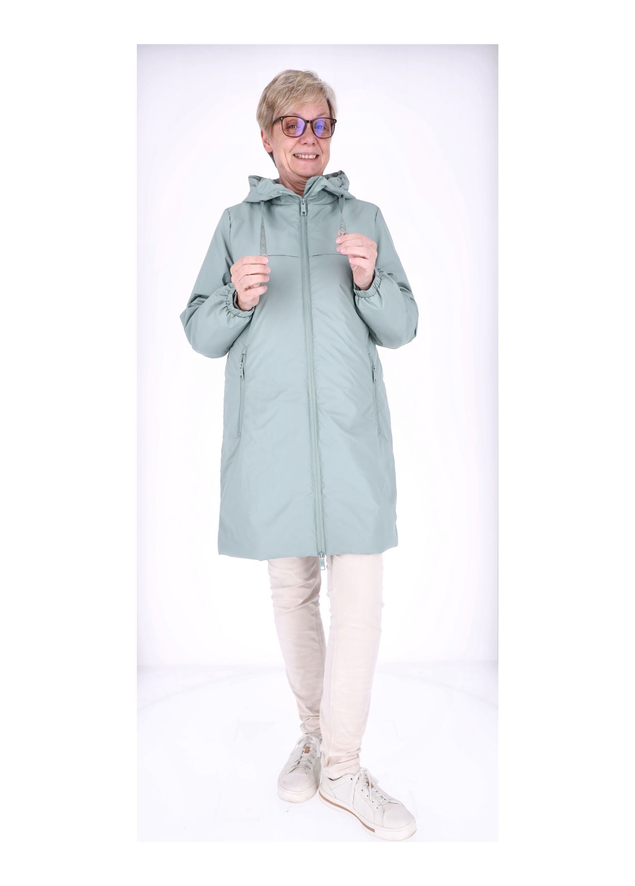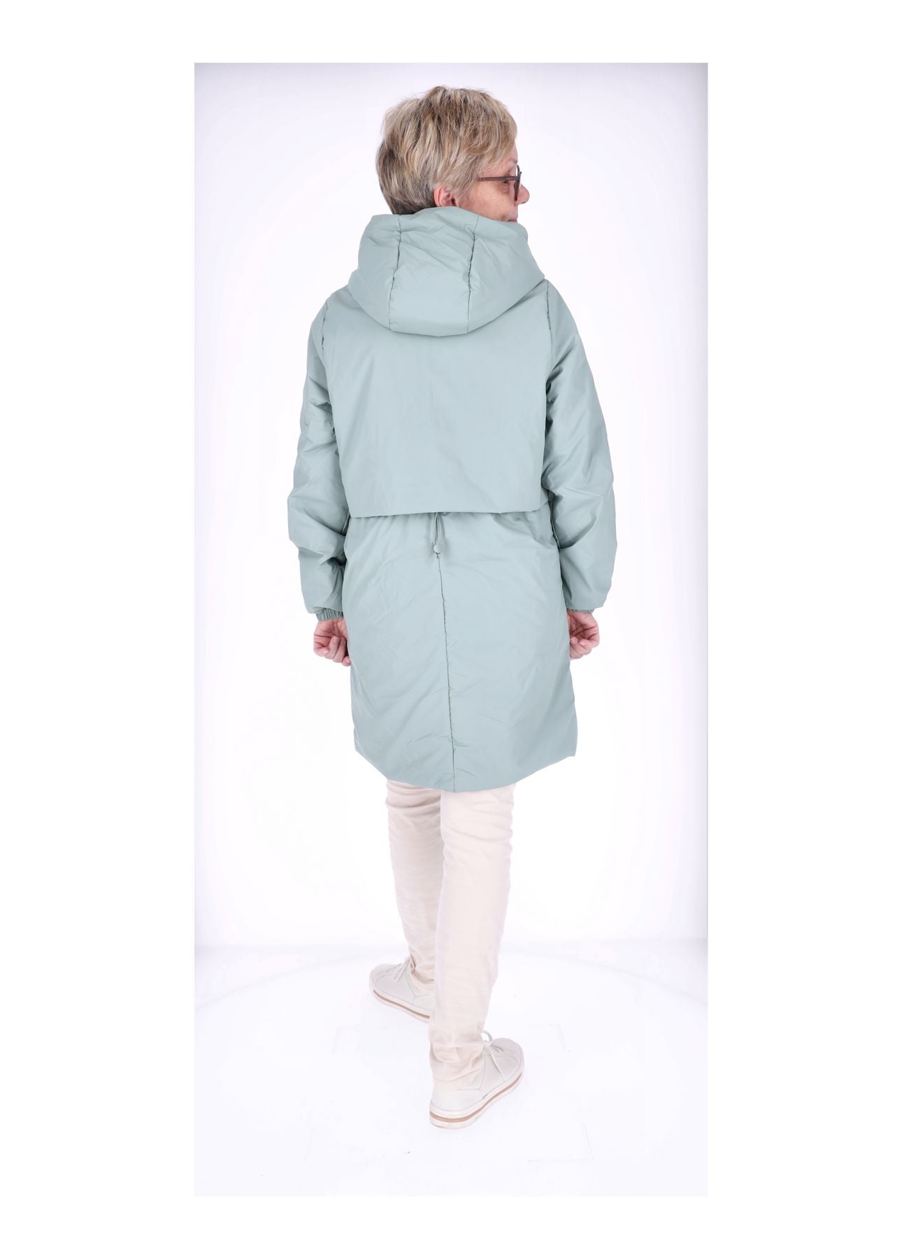 Natürlich wurde auch an den Komfort gedacht: Die zwei Einschubtaschen vorne bieten dir Platz für Handy, Schlüssel oder kalte Hände – praktisch und immer griffbereit. Und jetzt kommt das Detail, das dich endgültig überzeugen wird: Mit dem Zugband am Rücken kannst du die Jacke individuell anpassen. Ob locker geschnitten oder feminin tailliert – du entscheidest, wie dein Look wirken soll.