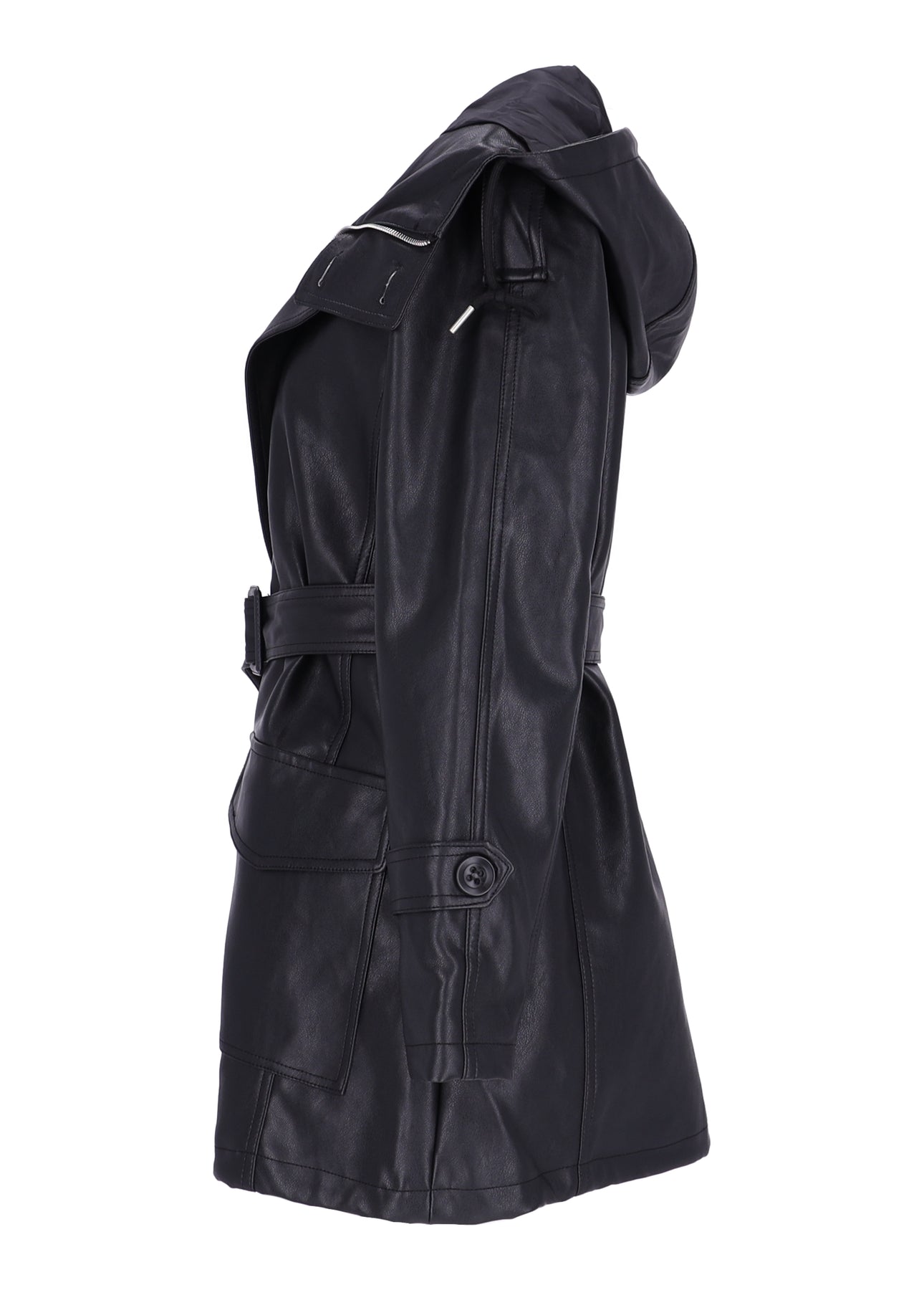 Entdecke unseren stilvollen Fakeledermantel mit Kapuze und Gürtel, der sowohl Eleganz als auch Funktionalität in Perfektion vereint. Dieser Mantel ist das ideale Mode-Statement für die moderne Frau, die Wert auf hochwertige und trendige Kleidung legt. Ob beim Stadtbummel, im Büro oder bei einem abendlichen Ausflug – dieser Mantel ist der perfekte Begleiter. Er lässt sich problemlos mit Jeans, Kleidern oder Röcken kombinieren und verleiht jedem Outfit eine elegante Note.