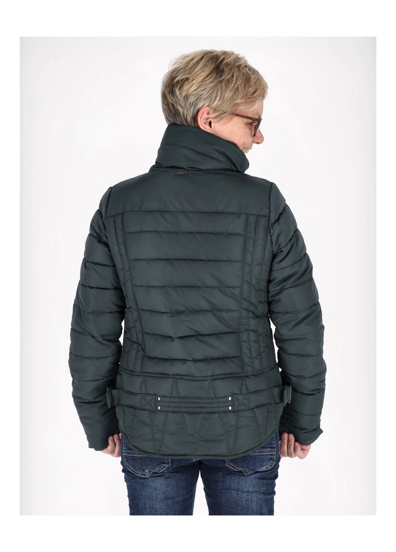 Praktische Details machen den Unterschied: zwei Einschubtaschen halten deine Essentials griffbereit, die versteckten Armbünde lassen keine Kälte durch, und an den Seiten kannst du die Jacke enger ziehen, um deine Figur schön zu betonen.