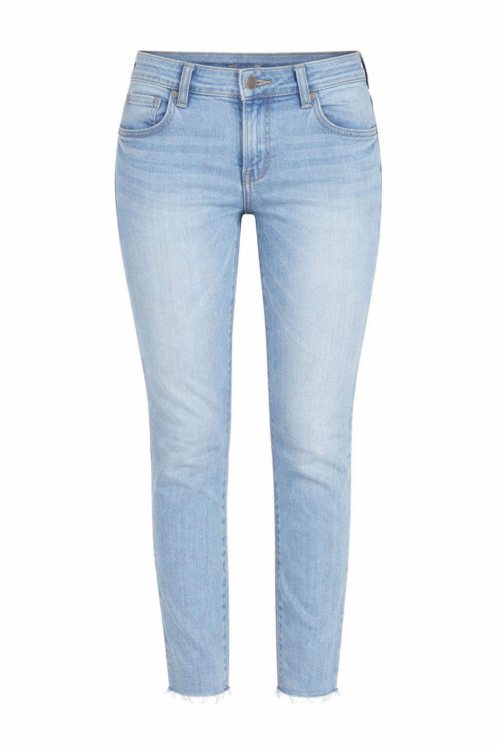 DOB Jeans, skinny, 5-pocket, Reißverschluss-schlitz, runde push up Passe, Abnäher hinten,aufgesetzte Gesäßtaschen, offener Saum