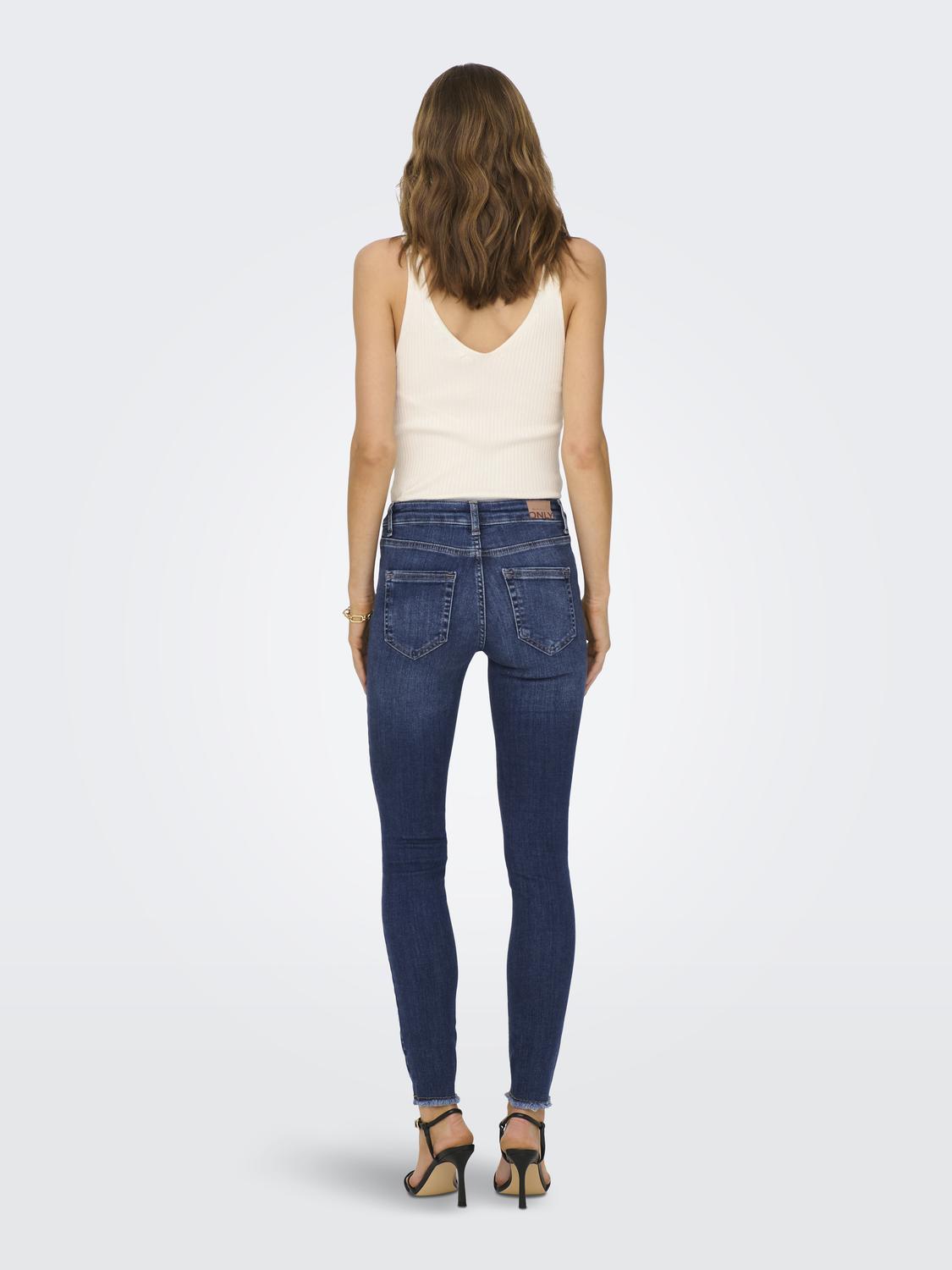 Hergestellt aus extra dehnbaren high-performance Stoffen für das nächste Level an Wohlfühl-Komfort.. - Produkttyp : Skinny Jeans - Verschluss : Reißverschluss - Taille : Mittlere Taille - Länge/Größe : Knöchellang - Beindetails : Offener Saum - Details : Gürtelschlaufen, Rotgussnieten - Waschen : Sanft gewaschener dunkler Denim-Look - Passform : Diese Skinny Fit Jeans schmiegt sich von der Hüfte bis zum Knöchel eng an deine Beine