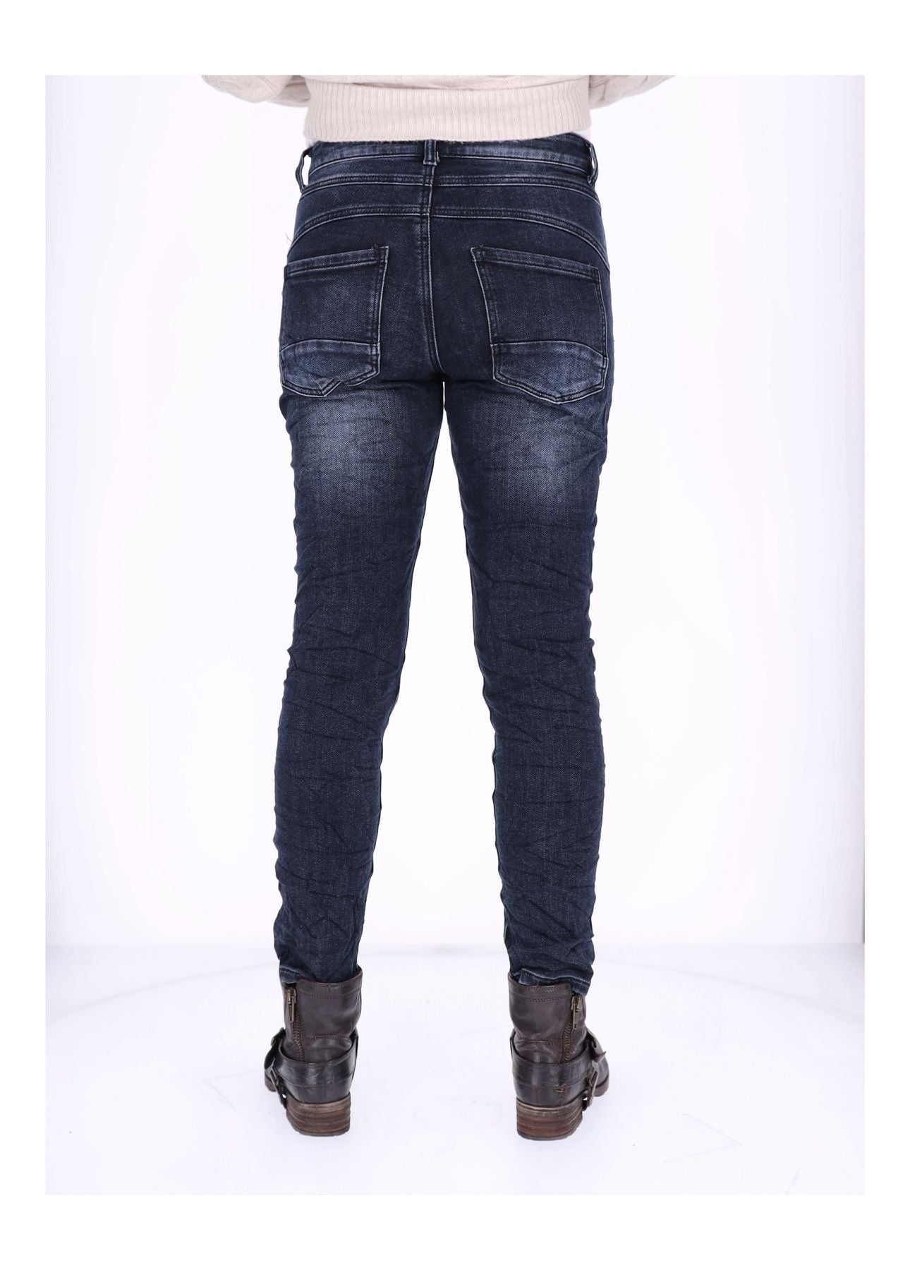 Gefertigt aus 80% Baumwolle, 18,5% Polyester und 1,5% Elasthan, bietet die Jeans weichen Griff, leichte Dehnbarkeit und hohe Formstabilität. Der bewusst leicht zerknitterte Look verleiht dem Outfit einen lässigen, coolen Charakter – so sieht die Jeans modern und authentisch aus.