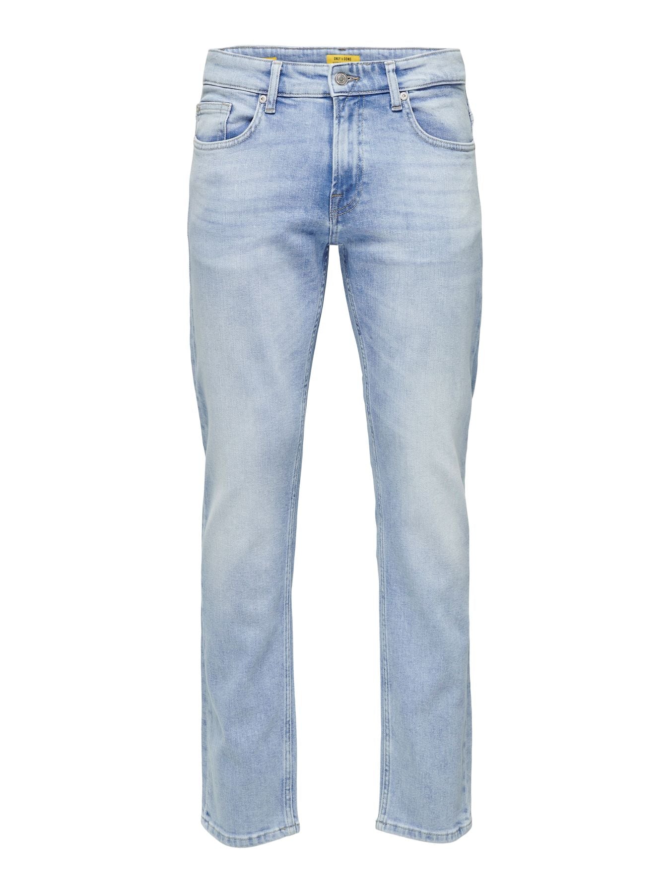 Belebe deine Alltags-Garderobe und hole dir neue, coole Frühlingsstyles, die einen leichten, zeitlosen Look kreieren.Superstretch-Denim bietet Wohlfühlkomfort der Extraklasse. - Produkttyp : Slim Fit Jeans - Verschluss : Reißverschluss - Taschen : Gesäßtaschen, Münztasche, Taschen vorn - Taille : Mittlere Taille - Details : Gürtelschlaufen, Biobasierter, für Veganer geeigneter Aufnäher - Waschen : Helle Waschung für einen ausgewaschenen und helleren Denim-Look, Zufälliger Bleichprozess für einen einzigartigen Faded-Look - Passform : WEFT ist unser Regular Fit. So besitzen die Jeans ein gerades Bein mit einem mittelhohen Bund. Sie wird aus Stretch-Denim hergestellt, wobei die Passform maximalen Komfort bietet, ohne dabei auf Style zu verzichten. Perfekt für den zeitlosen Denim-Look