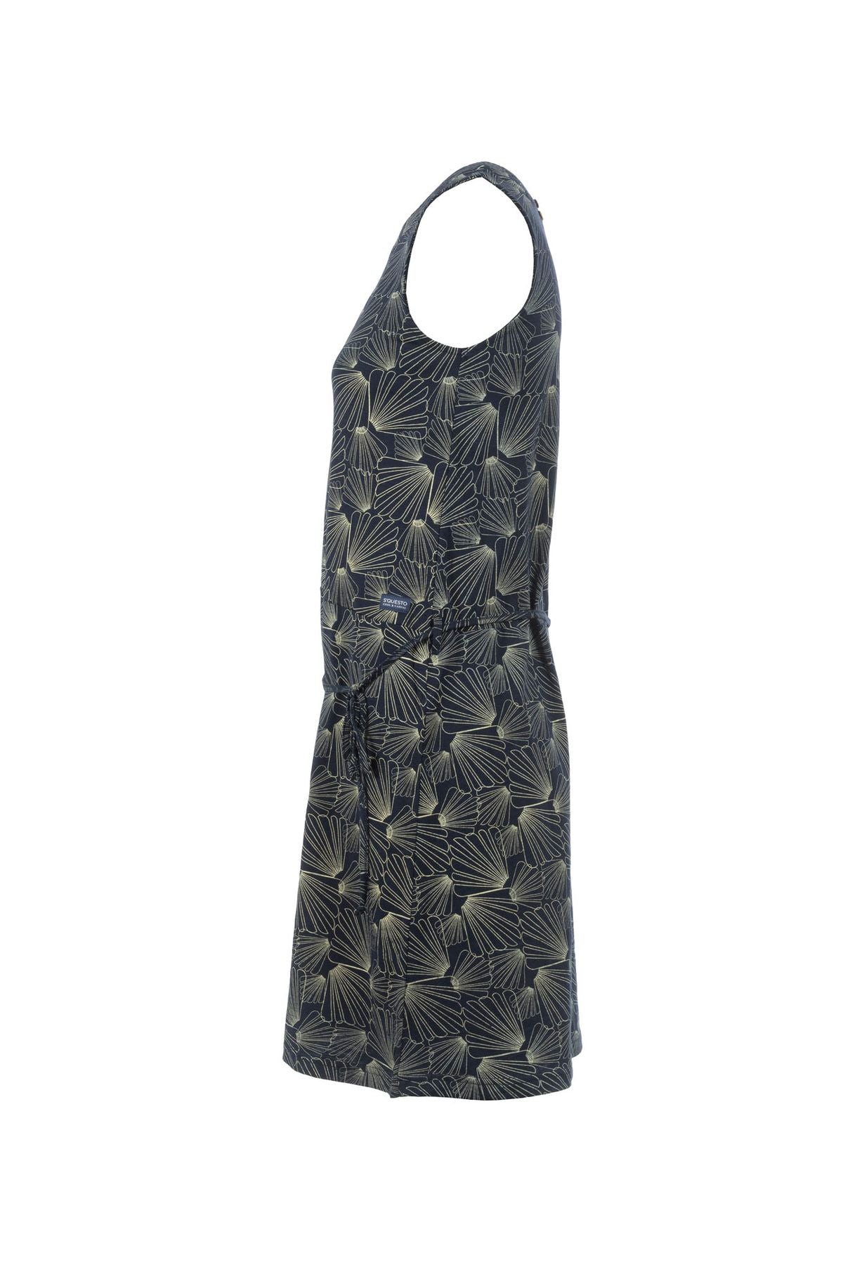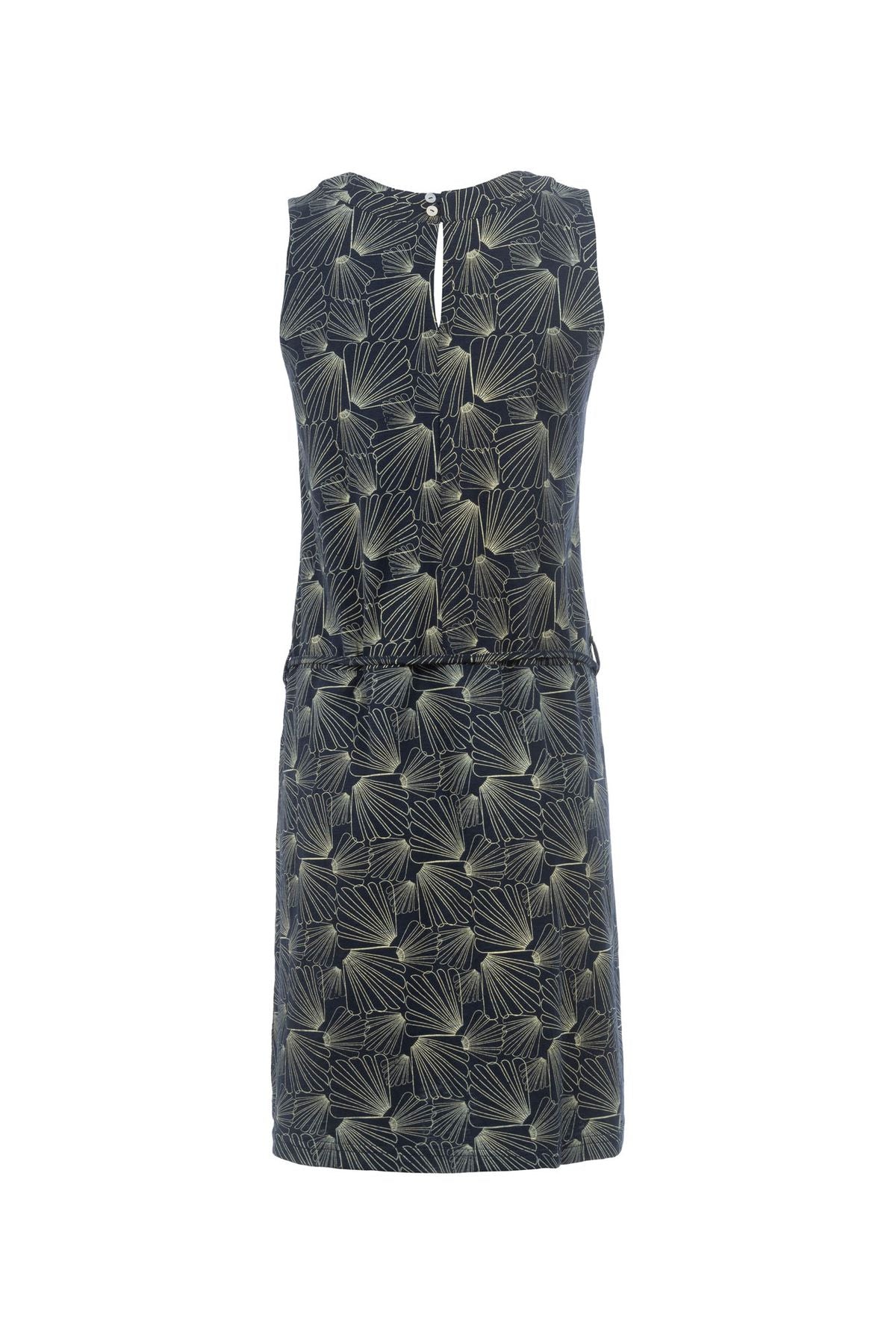 Ärmelloses Kleid mit Bindegürtel, das durch einen einzigartigen Allover-Print in frischem Gelb sofort ins Auge fällt.