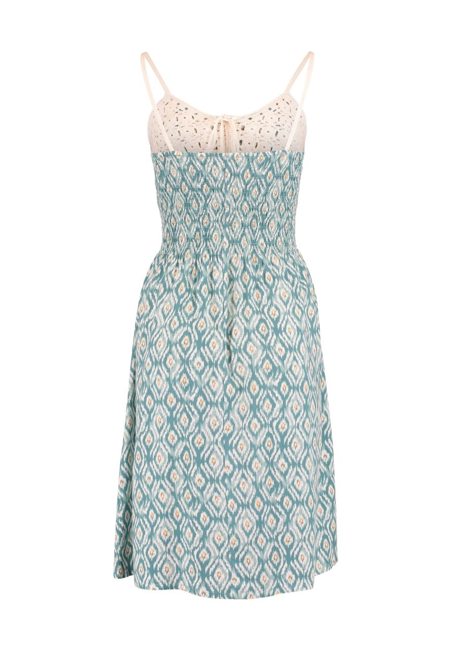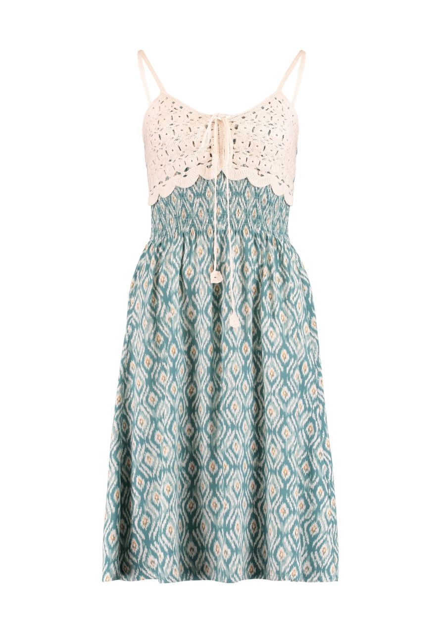 Trägerkleid mit Crochet-Oberteil, elastischem Taillenbund und Blumenprint.