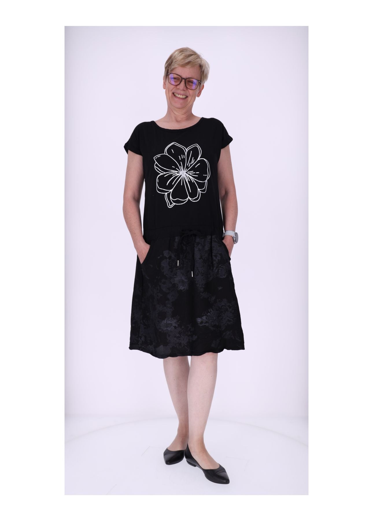 Design: Marmorierter Rockteil und floraler Brustprint für einen femininen Look