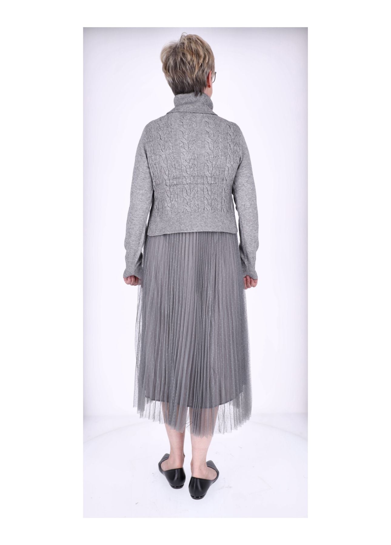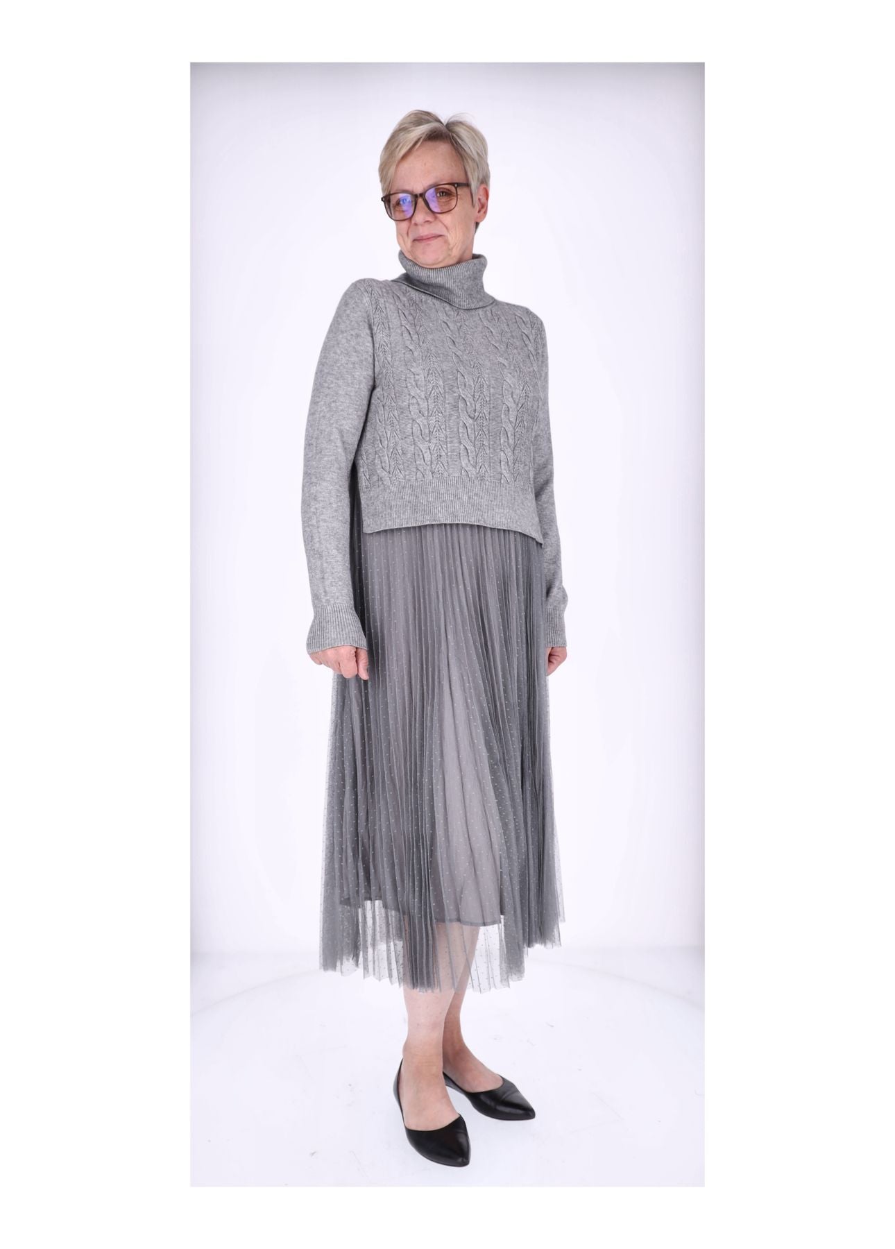 Zwei Looks – ein Outfit: Damen Kleid mit Tüllrock & Strickpullover