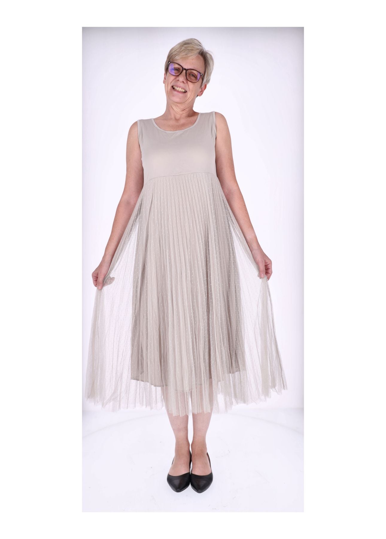 Styling-Tipp: Trage das Tüllkleid solo mit Pumps oder Stiefeletten für einen eleganten Abendlook oder kombiniere es mit dem Strickpullover und Boots für einen kuscheligen, modernen Alltagsstyle.