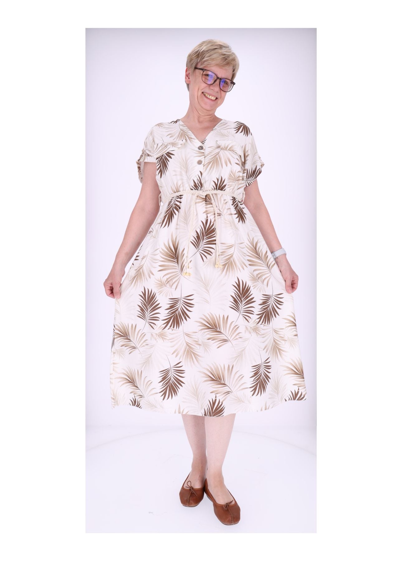 Damenkleid mit Palmenwedel-Print